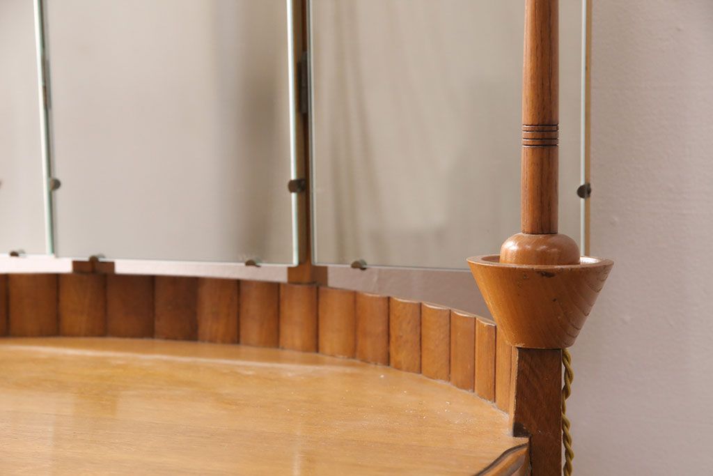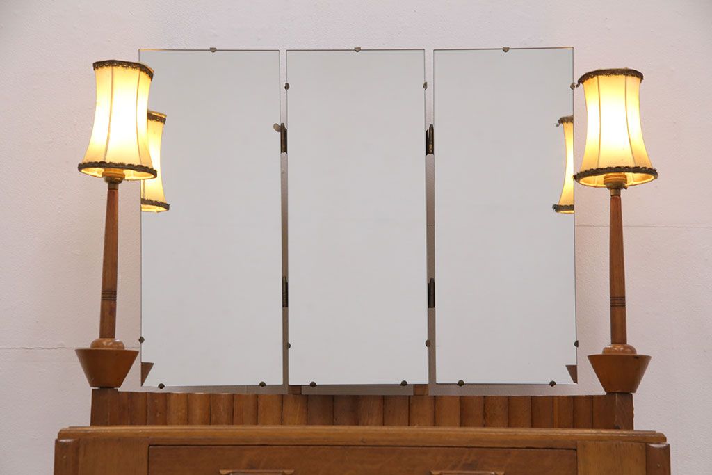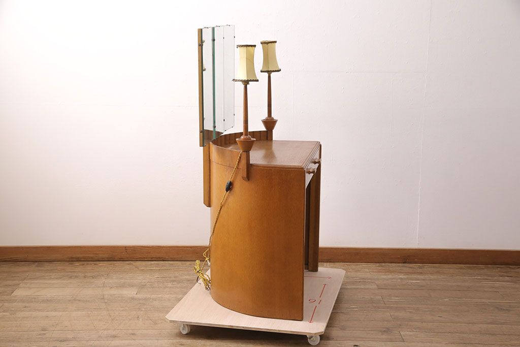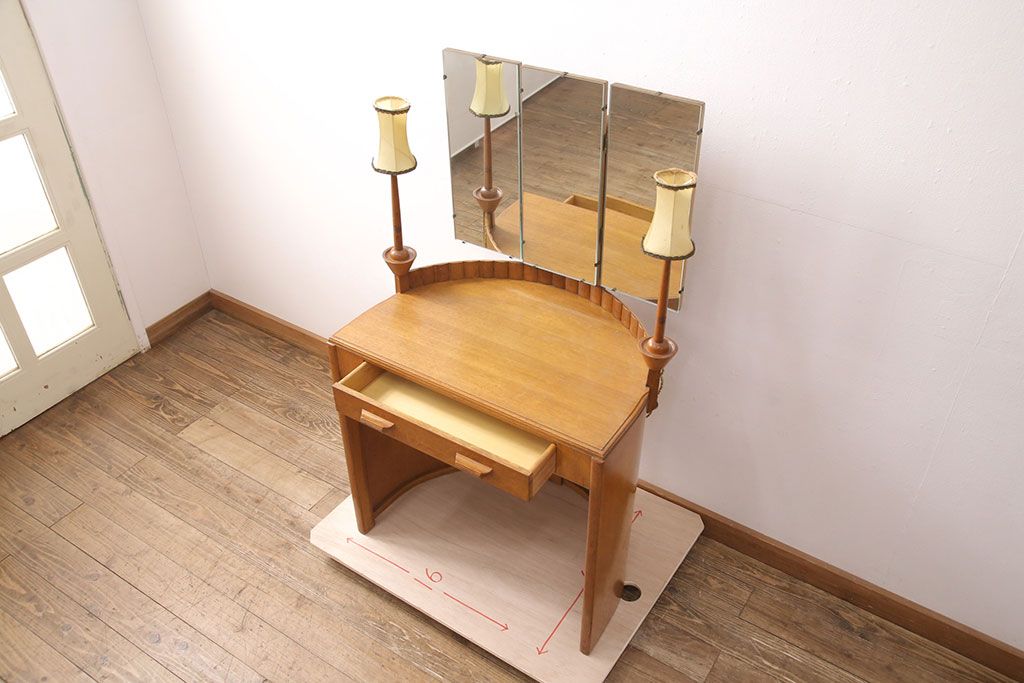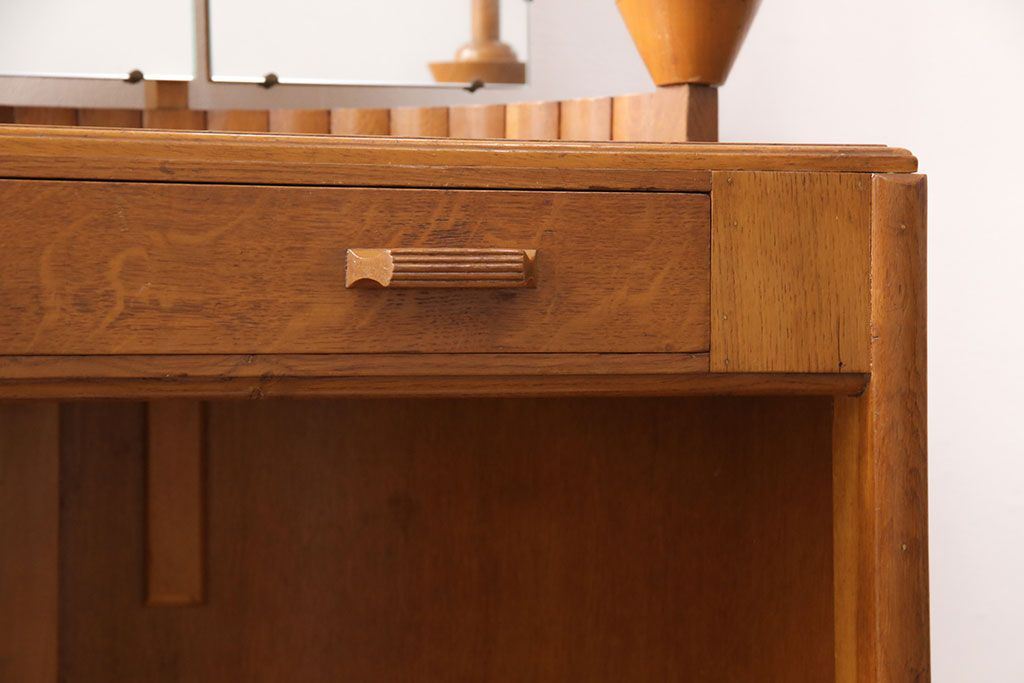 椅子・ベンチ> スツール > イギリスヴィンテージ E.GOMME社 オーク材 希少品!レトロな照明付きのビンテージドレッサー&スツールセット(化粧台、三面鏡、鏡台、イス、椅子)(R-051033)