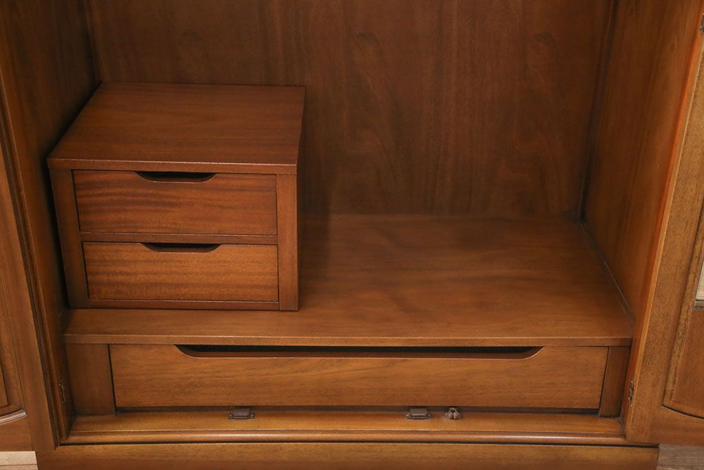 中古 美品 DREXEL HERITAGE(ドレクセルヘリテイジ) Triune(トライユン)シリーズ マホガニー材の木肌が美しいワードローブ(引き出し付き、キャビネット、収納棚、戸棚)(定価約90万円)(R-051083)