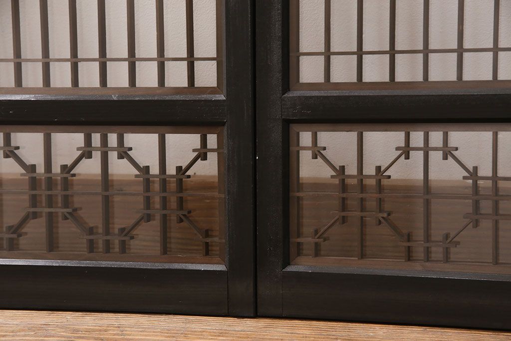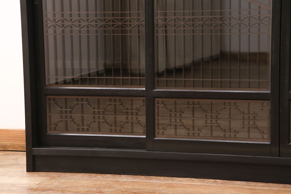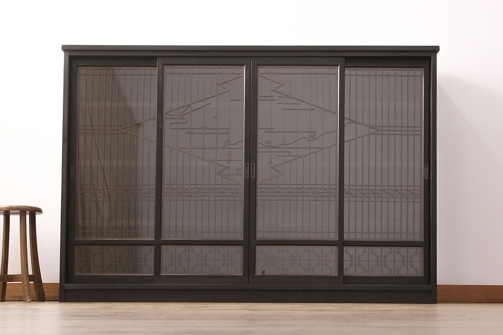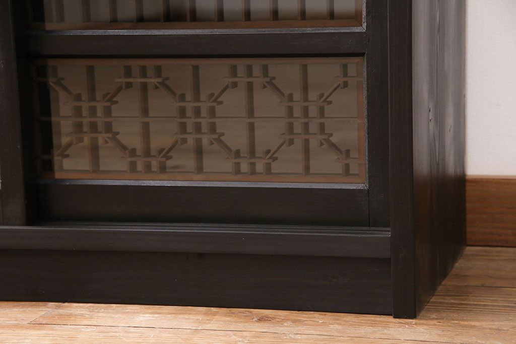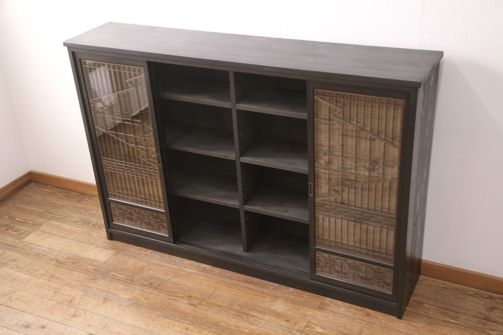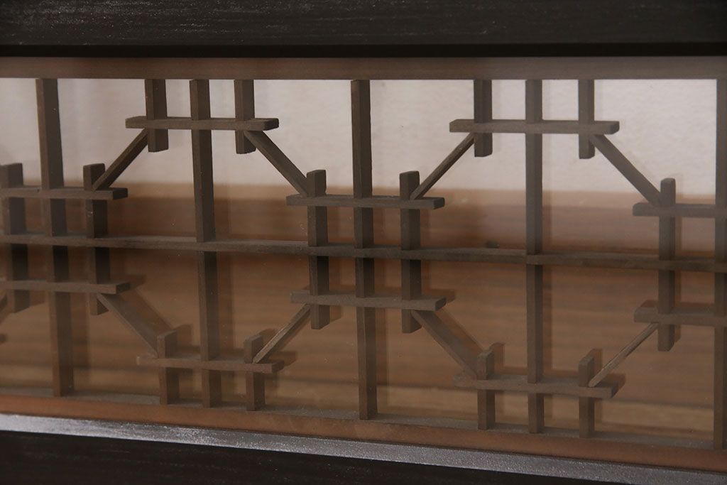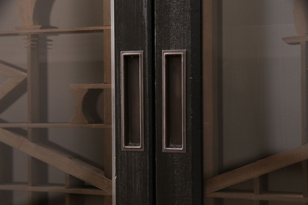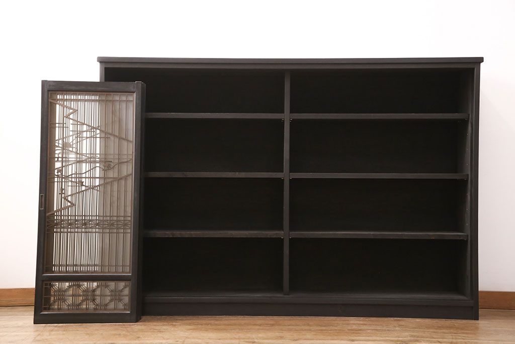 ラフジュ工房オリジナル 古建具リメイク 風景を模した格子が和の情緒を高める書院収納棚(本箱、本棚、書棚、戸棚)(R-051091)
