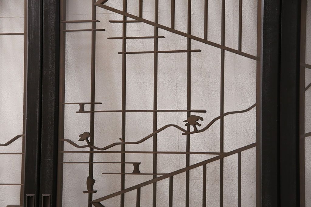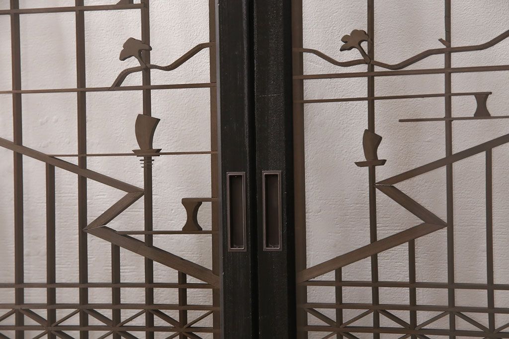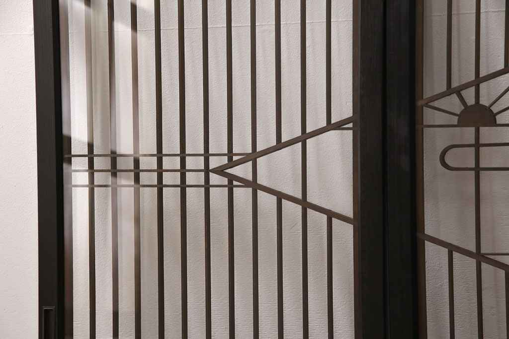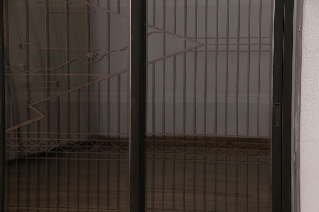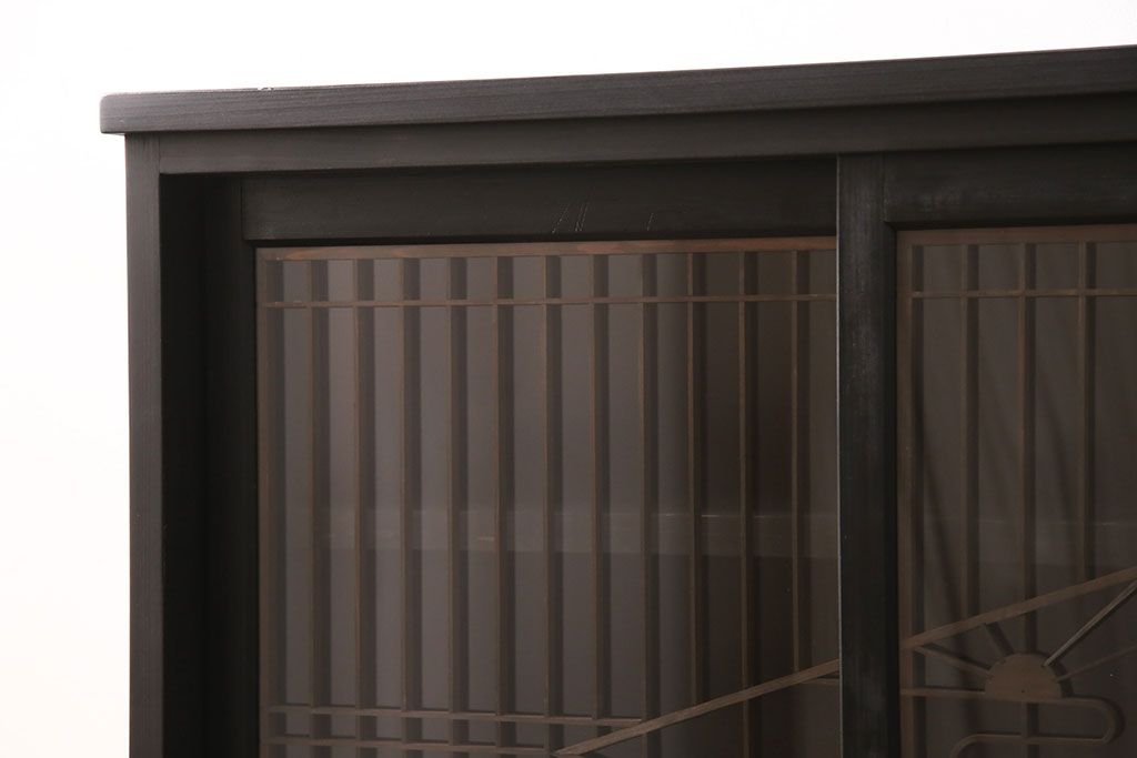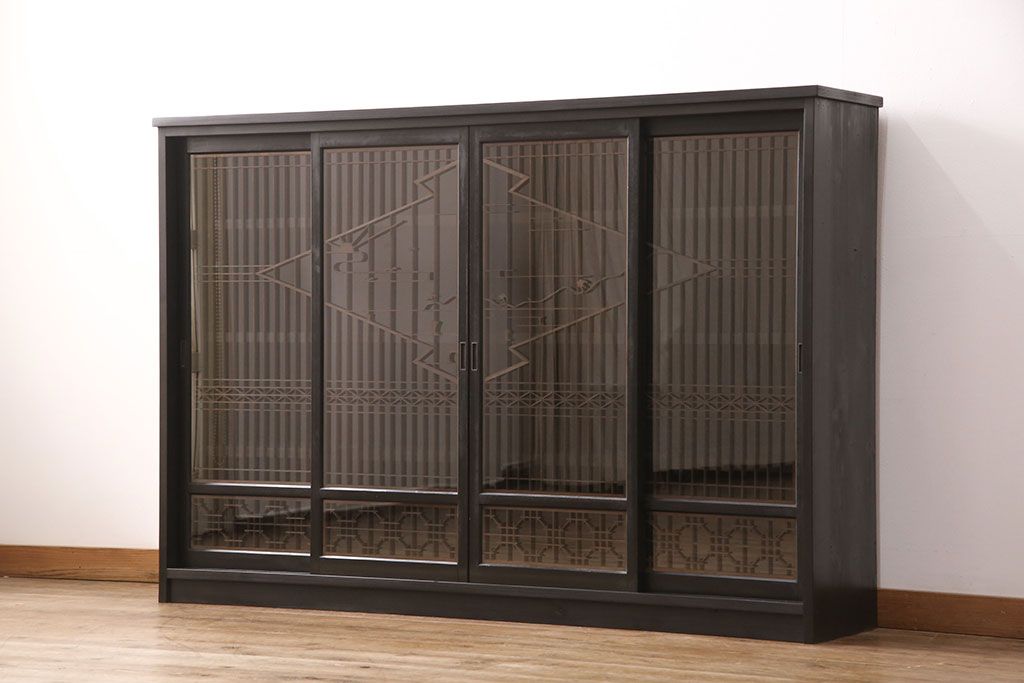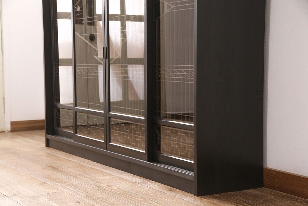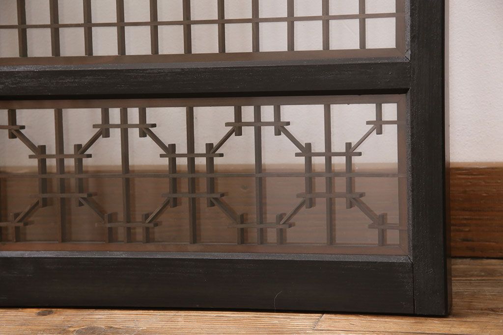 ラフジュ工房オリジナル 古建具リメイク 風景を模した格子が和の情緒を高める書院収納棚(本箱、本棚、書棚、戸棚)(R-051091)