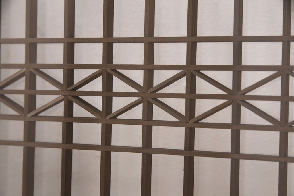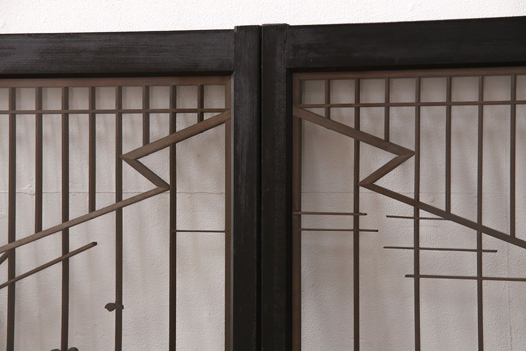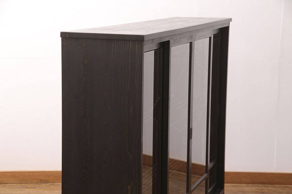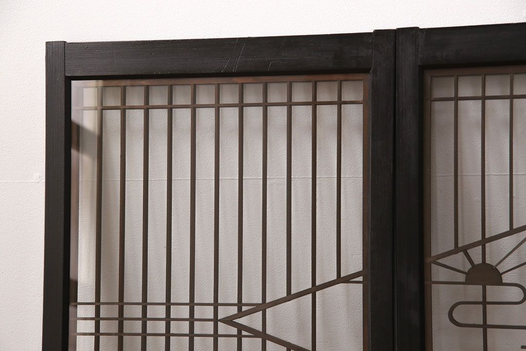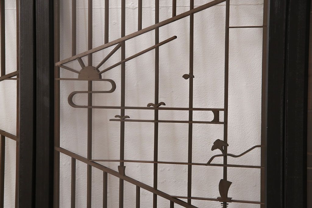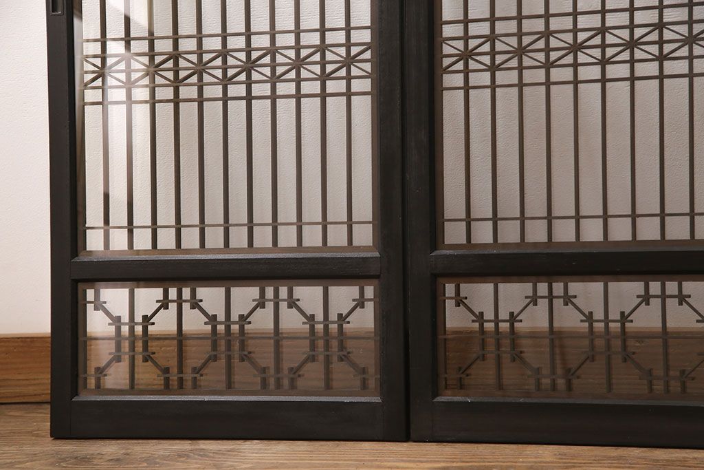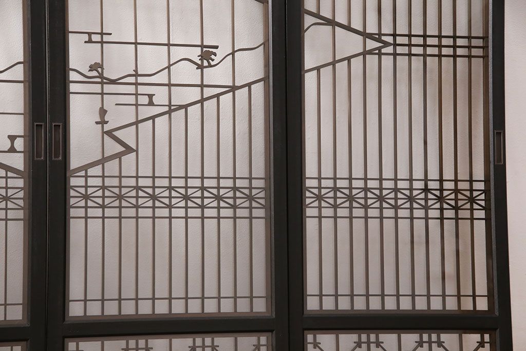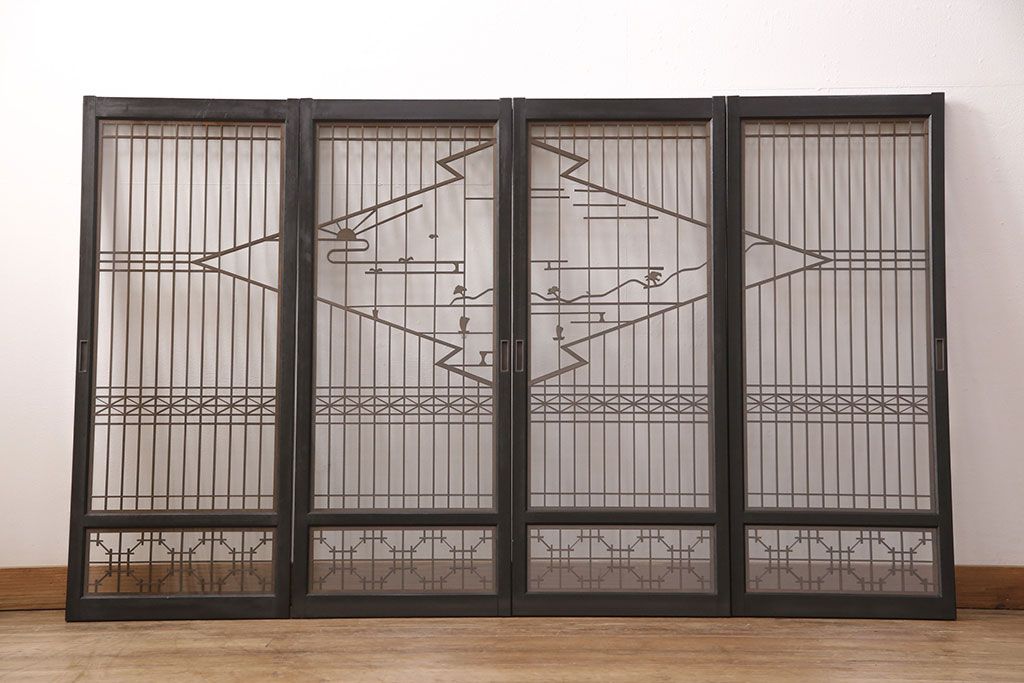ラフジュ工房オリジナル 古建具リメイク 風景を模した格子が和の情緒を高める書院収納棚(本箱、本棚、書棚、戸棚)(R-051091)