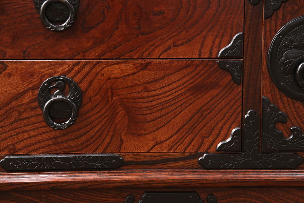欅の木目と職人技が光る飾り金具が美しいですね。