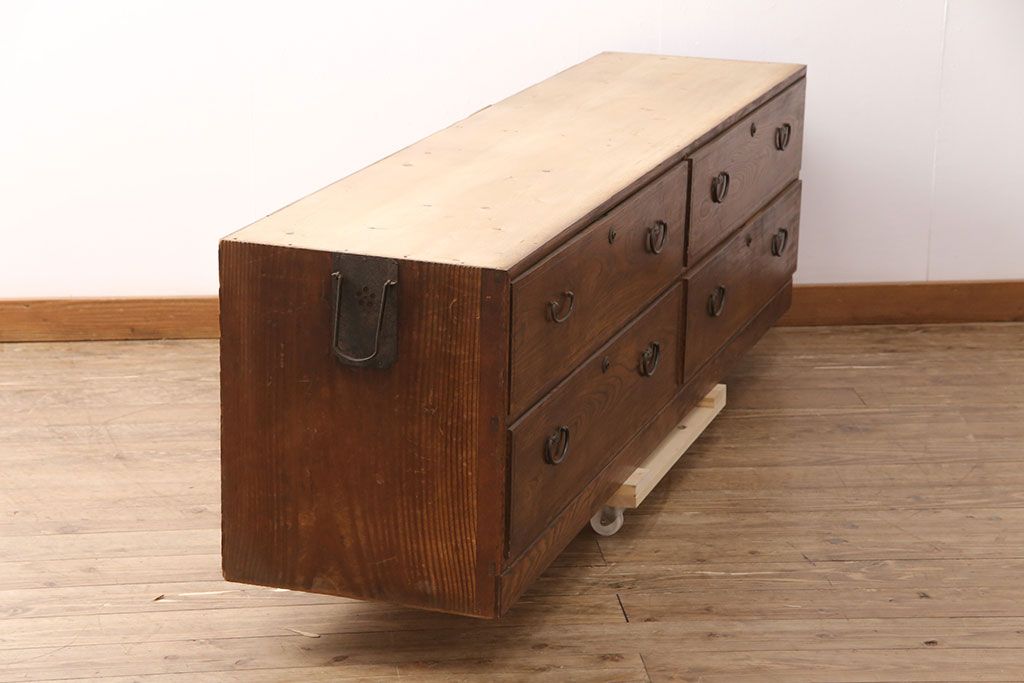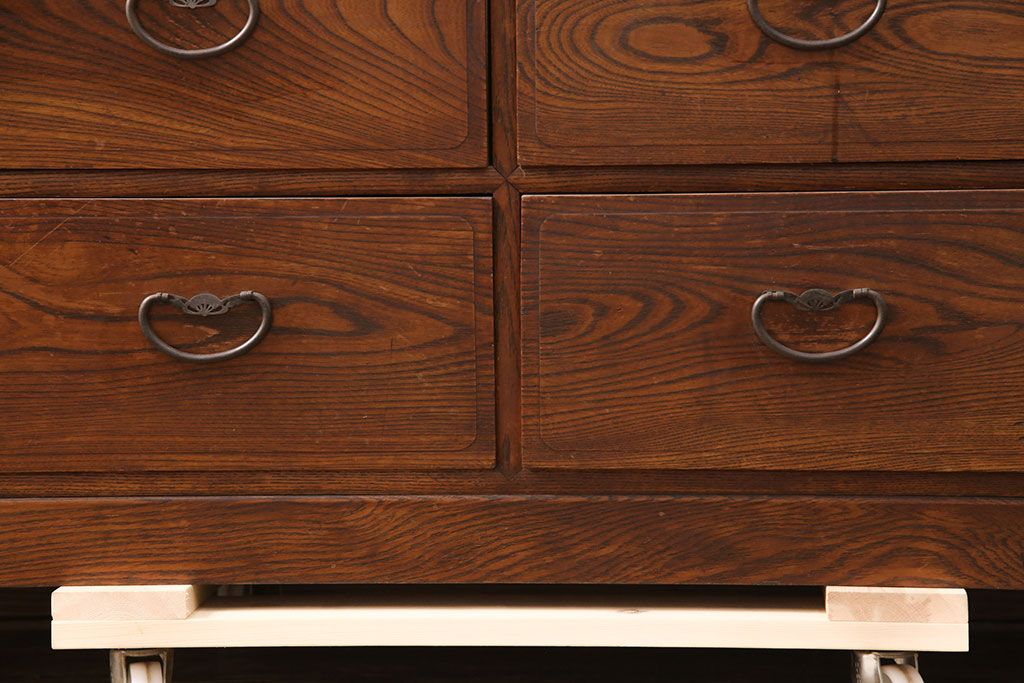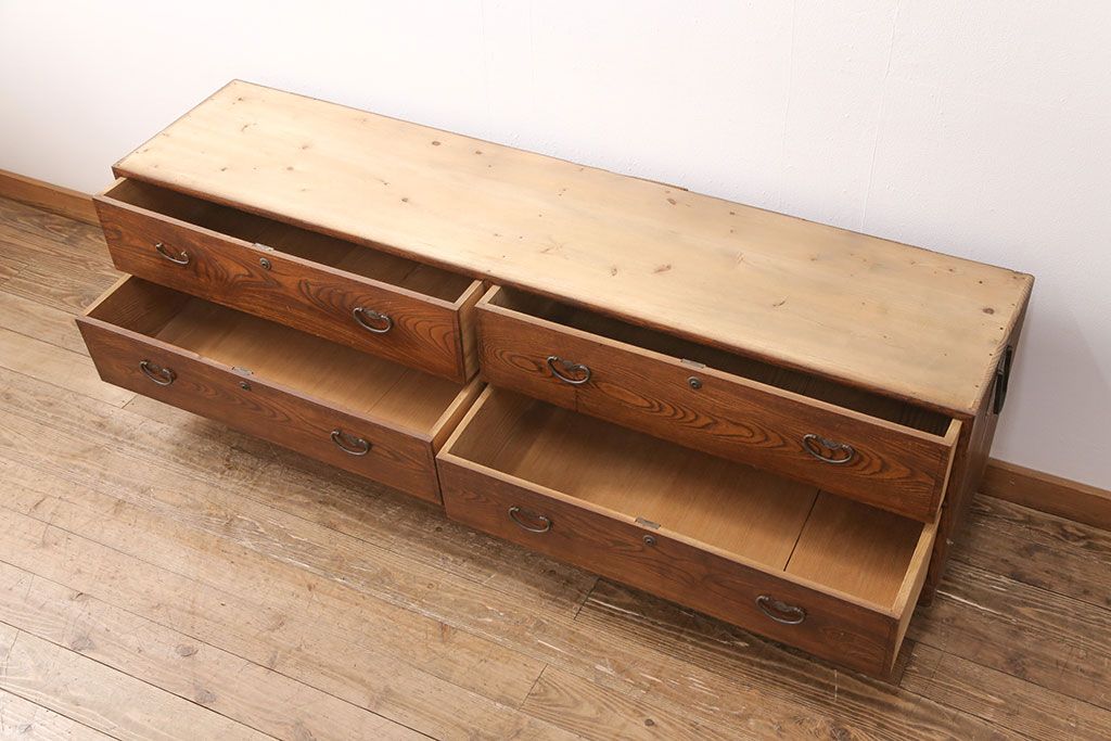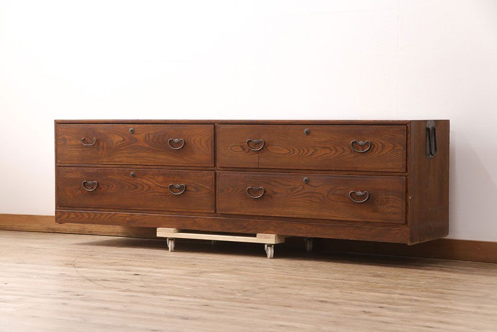 和製アンティーク 前面ケヤキ シンプルな佇まいの中に美しい杢目が映えるローチェスト(ローボード、テレビ台、引き出し)(R-050884)