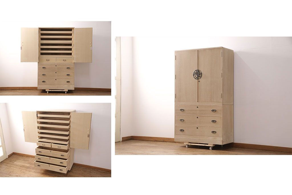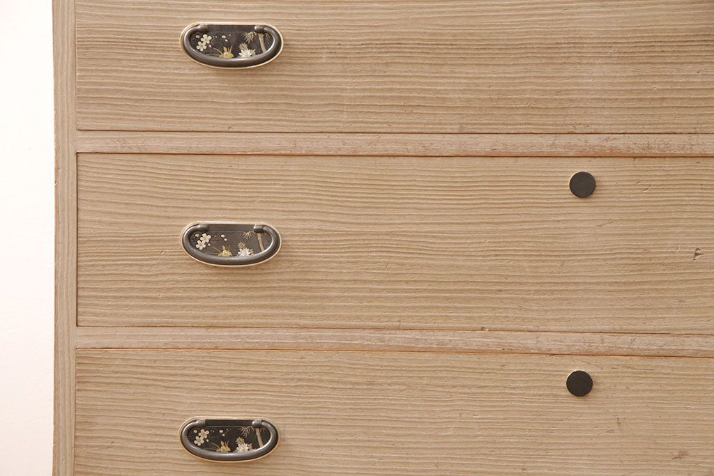 ラフジュ工房> 和箪笥 > 中古 国産 在銘 金具の繊細な絵柄が美しい衣装盆付き総桐箪笥(並厚)(衣装箪笥、着物箪笥、和タンス、桐たんす)(定価約60万円)(R-051142)