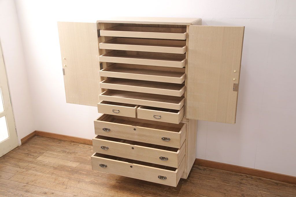 ラフジュ工房> 和箪笥> 着物箪笥 > 中古 国産 在銘 金具の繊細な絵柄が美しい衣装盆付き総桐箪笥(並厚)(衣装箪笥、着物箪笥、和タンス、桐たんす)(定価約60万円)(R-051142)