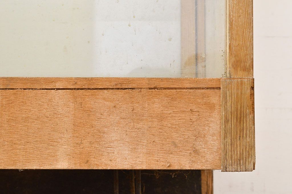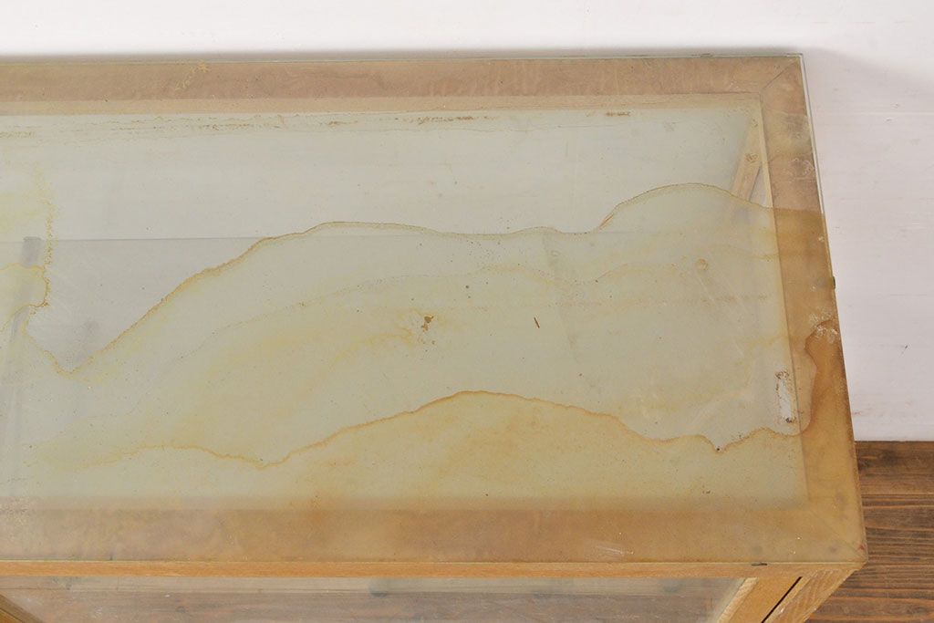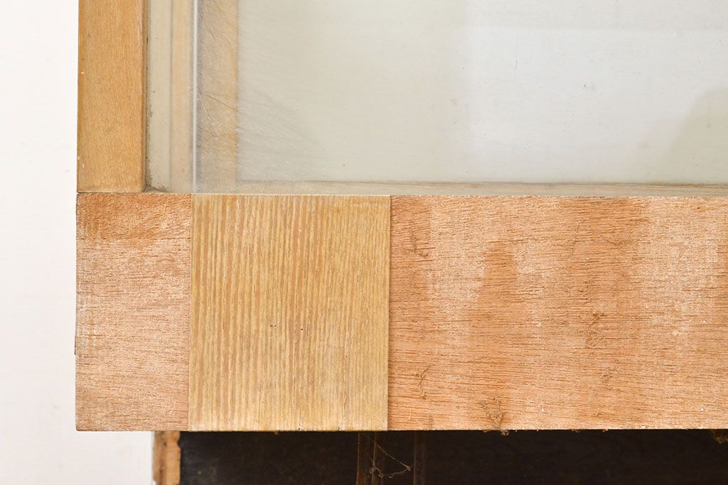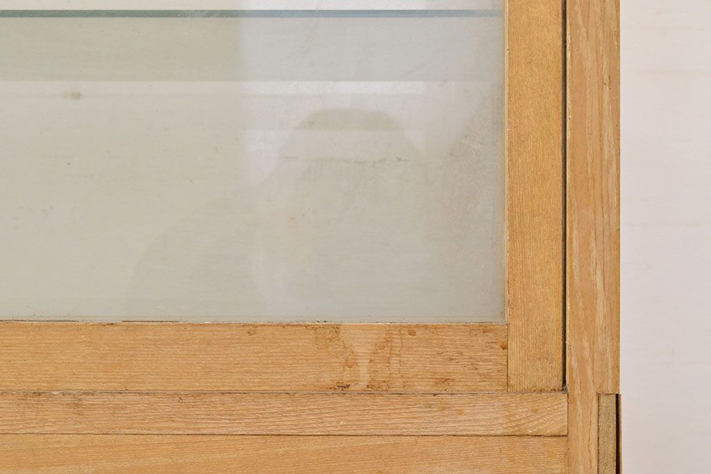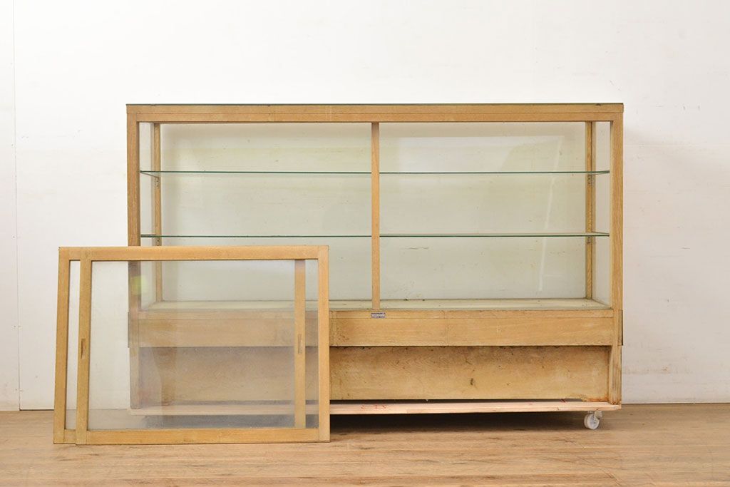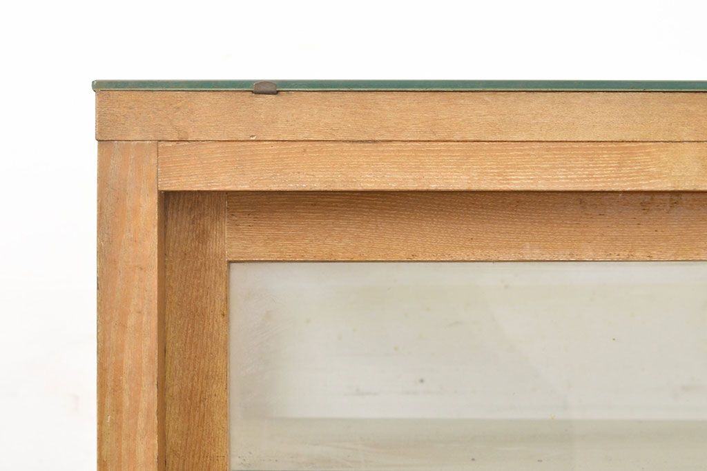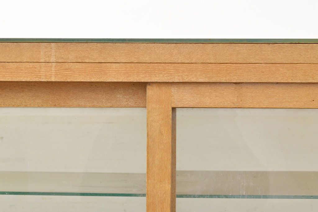 お問い合わせいただければ、優先してアップいたします。和製アンティーク ナラ材の素朴な木肌がレトロな雰囲気を演出するガラスケース(収納棚、陳列棚、ショーケース)(R-051055)です。