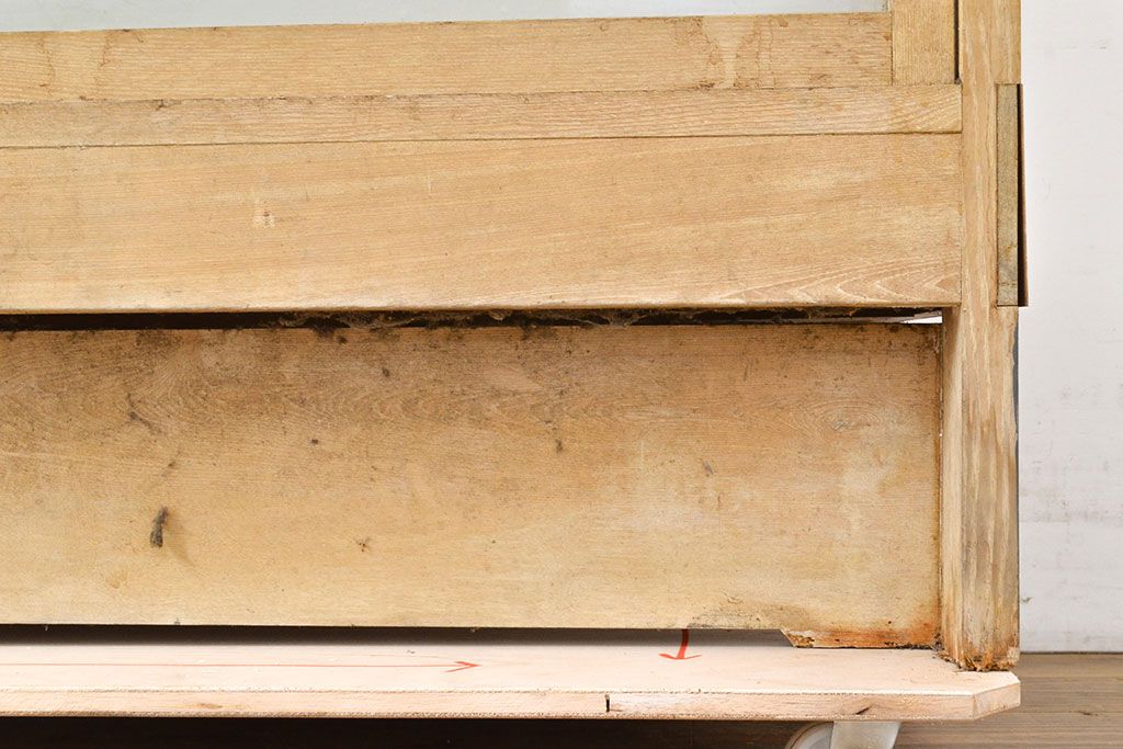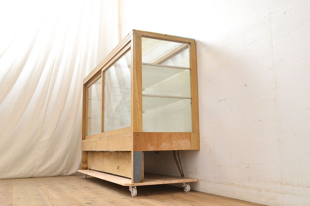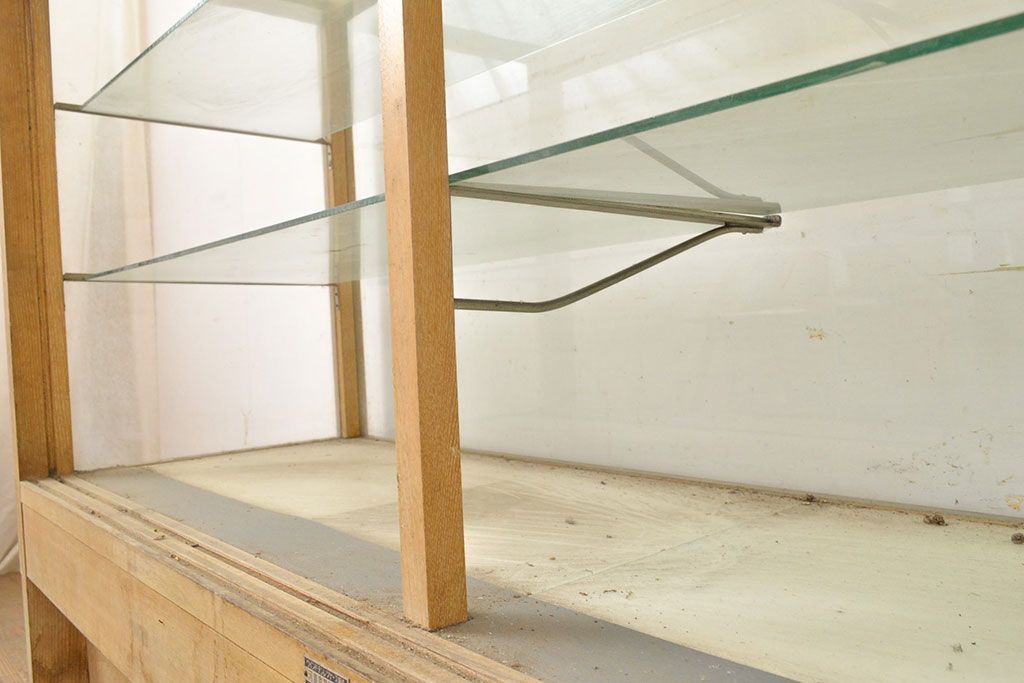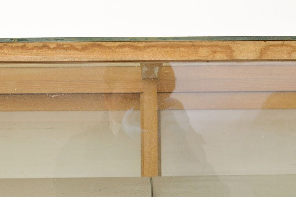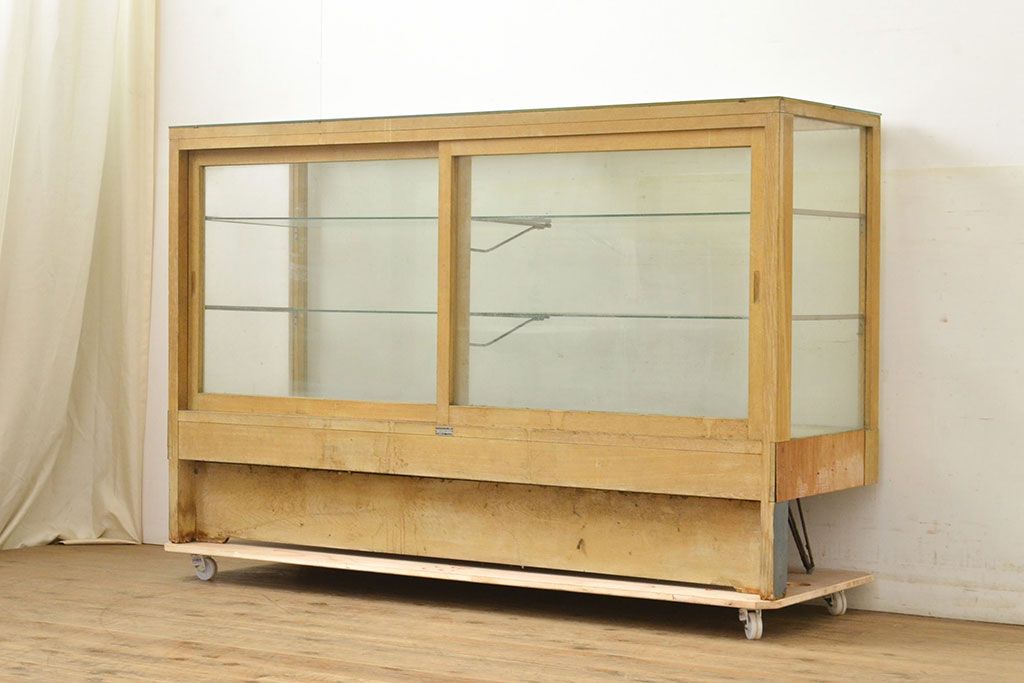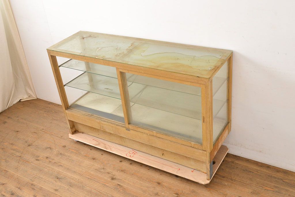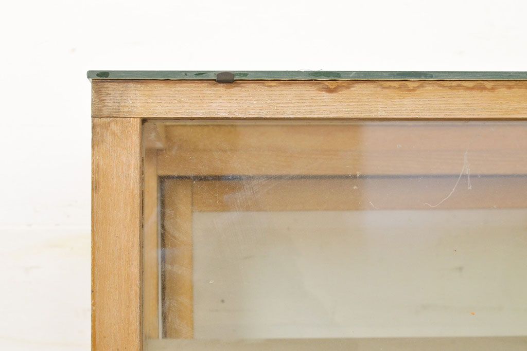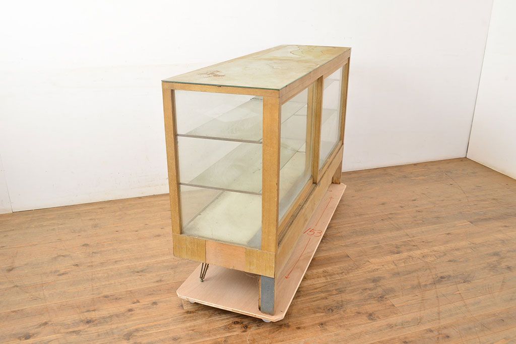 お問い合わせいただければ、優先してアップいたします。和製アンティーク ナラ材の素朴な木肌がレトロな雰囲気を演出するガラスケース(収納棚、陳列棚、ショーケース)(R-051055)です。