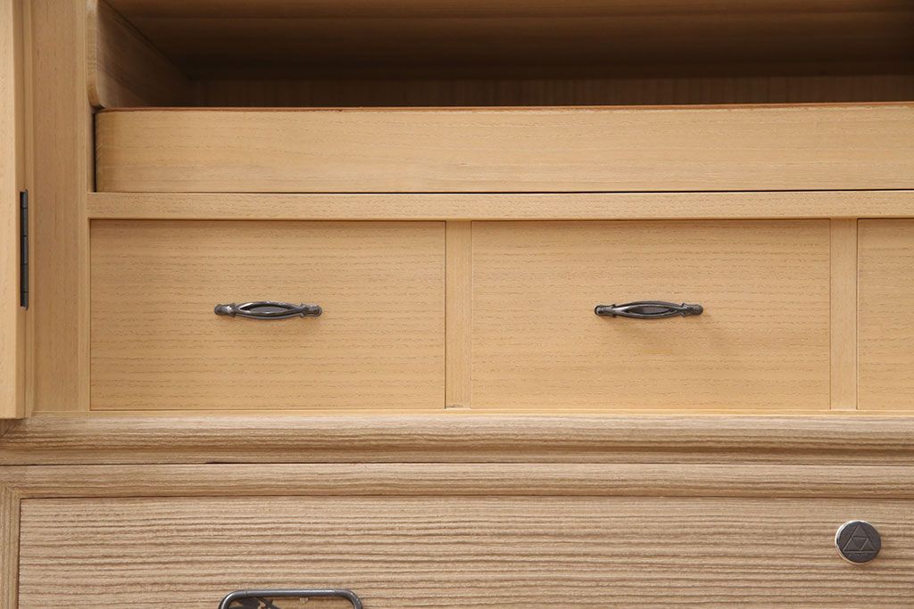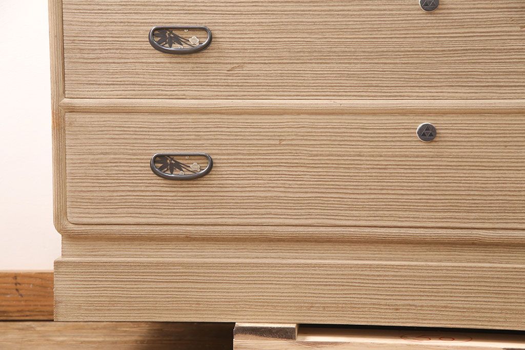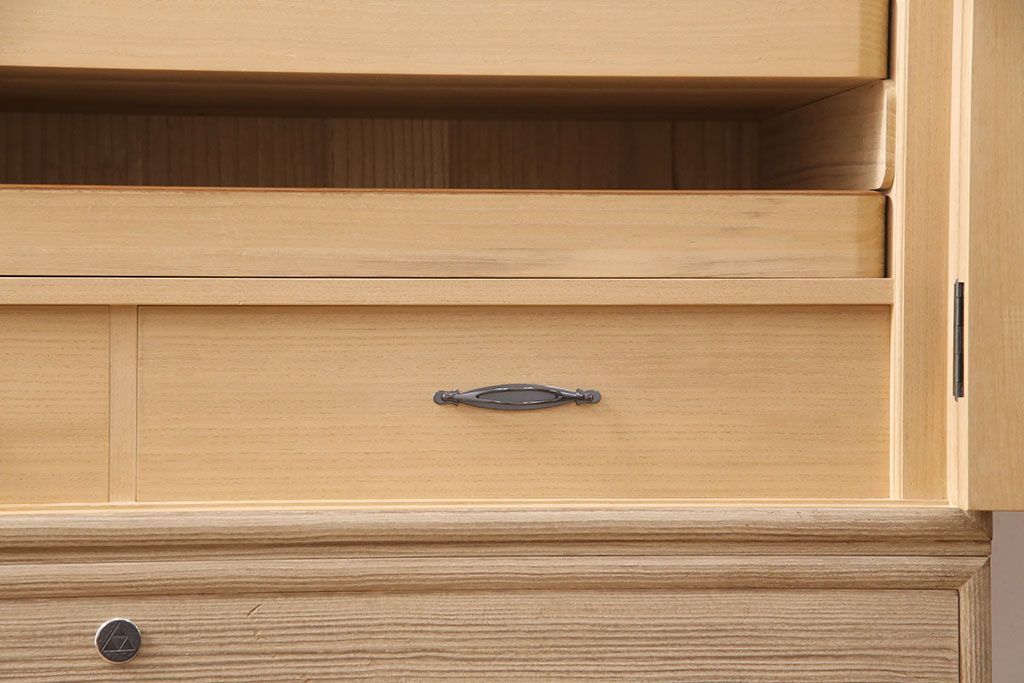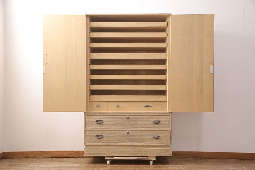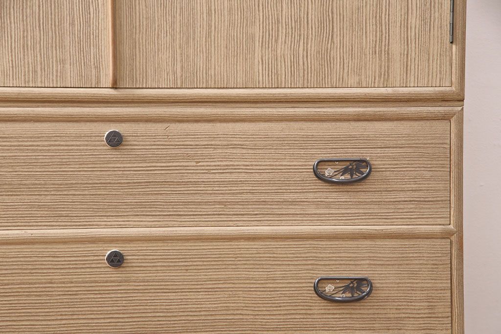 民芸家具 > 中古 国産 控えめな意匠が品の良さを漂わせる衣装盆付き総桐箪笥(並厚、四方丸)(衣装箪笥、着物箪笥、和タンス、桐たんす)(定価約90万円)(R-051143)