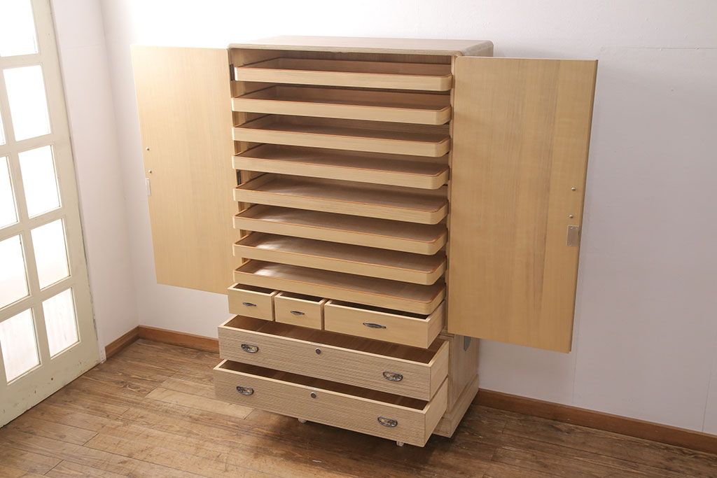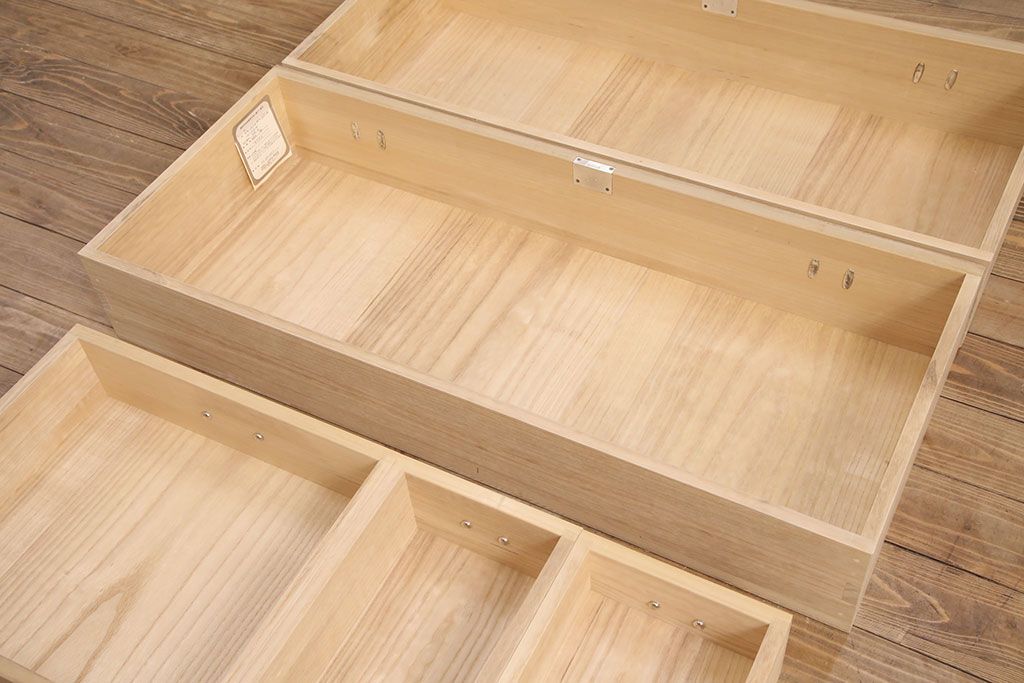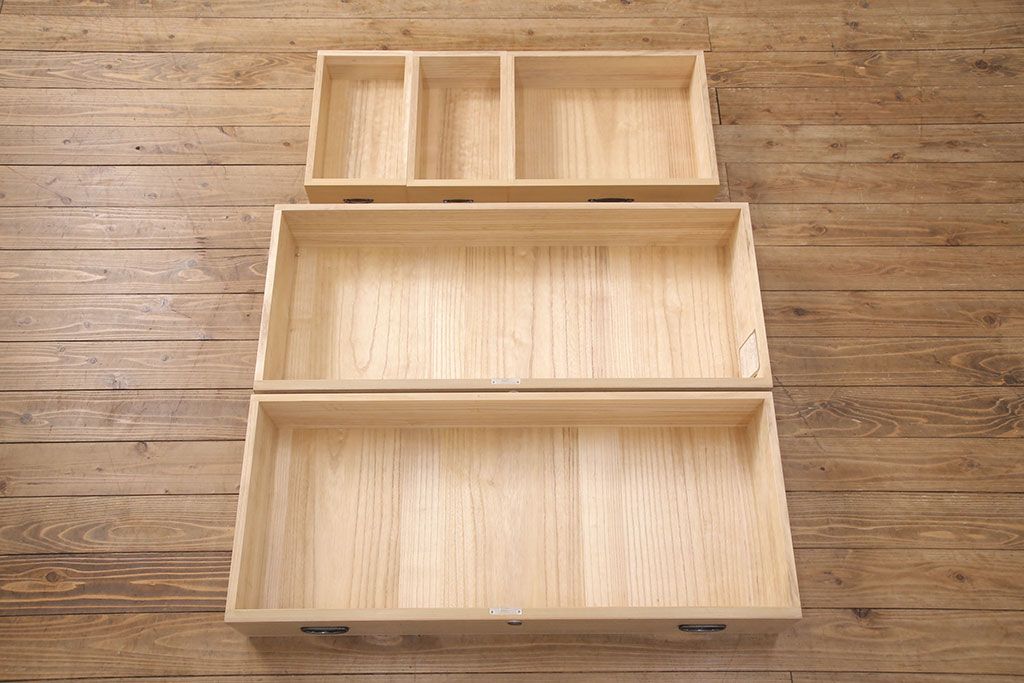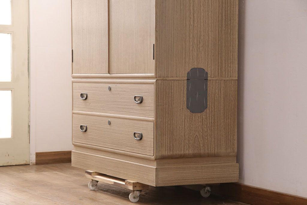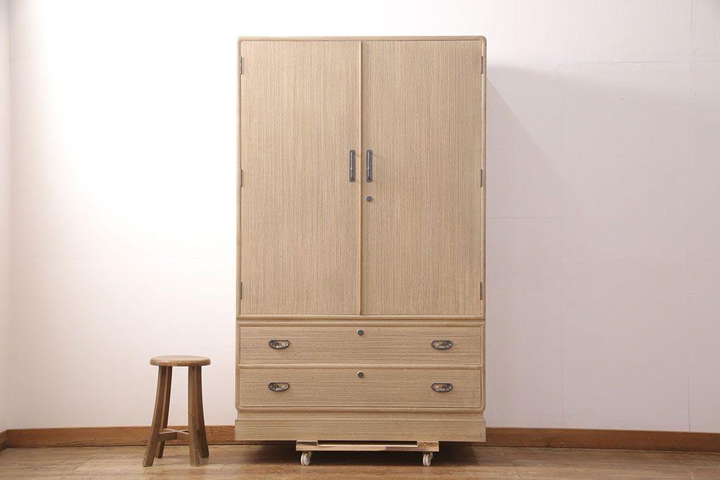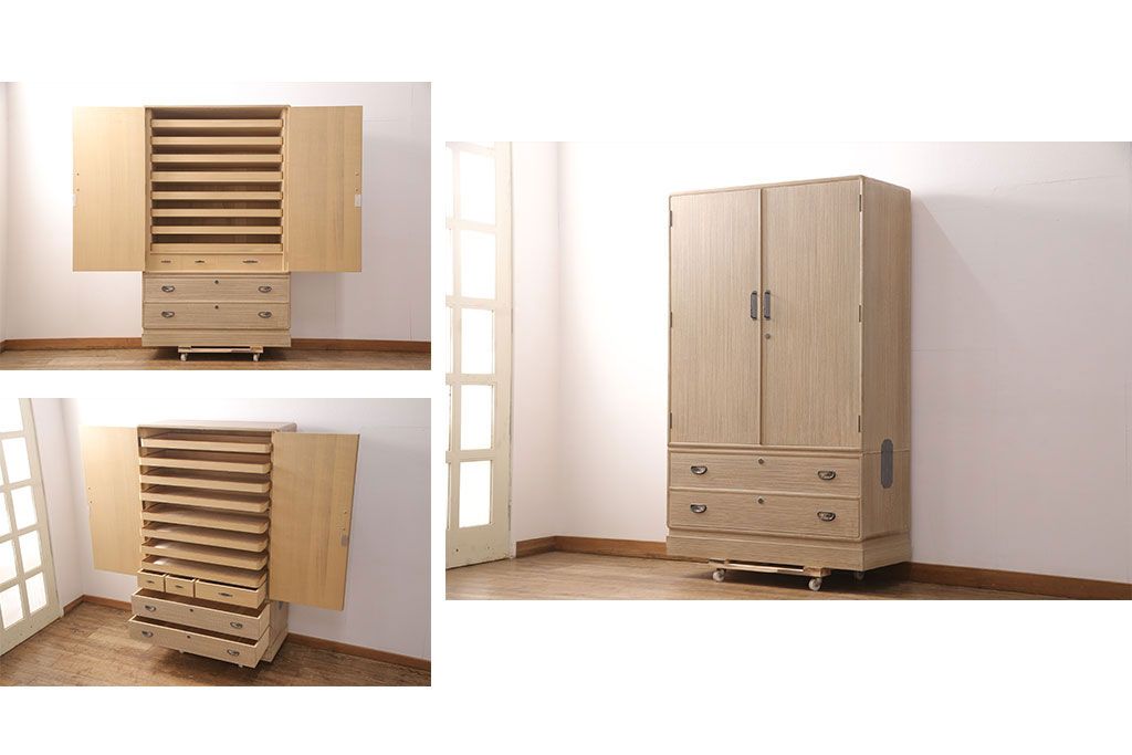 民芸家具 > 中古 国産 控えめな意匠が品の良さを漂わせる衣装盆付き総桐箪笥(並厚、四方丸)(衣装箪笥、着物箪笥、和タンス、桐たんす)(定価約90万円)(R-051143)