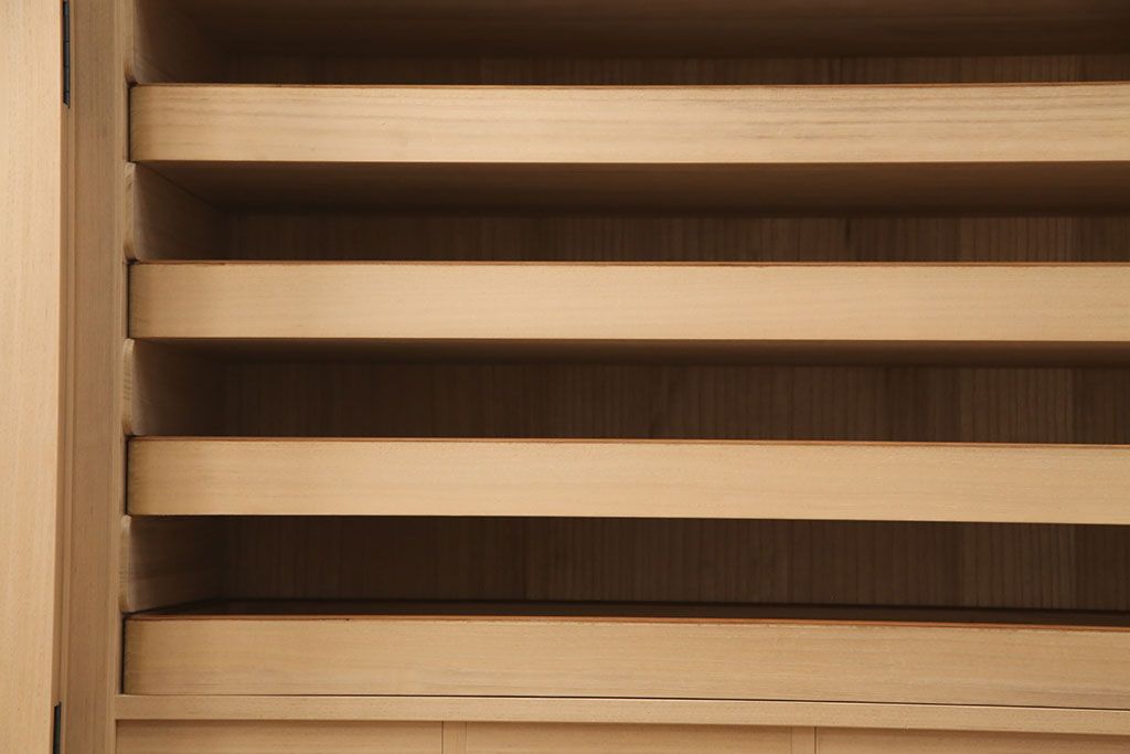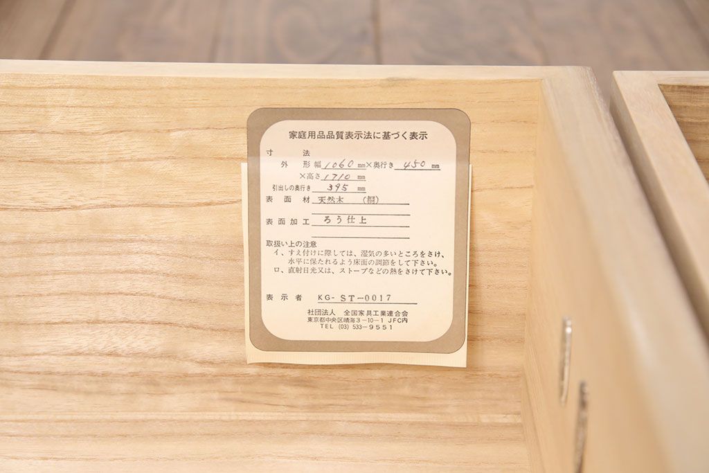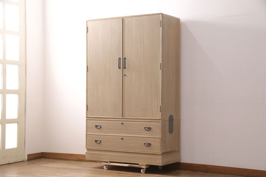 和箪笥 > 中古 国産 控えめな意匠が品の良さを漂わせる衣装盆付き総桐箪笥(並厚、四方丸)(衣装箪笥、着物箪笥、和タンス、桐たんす)(定価約90万円)(R-051143)