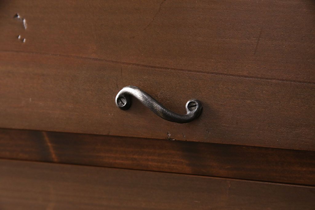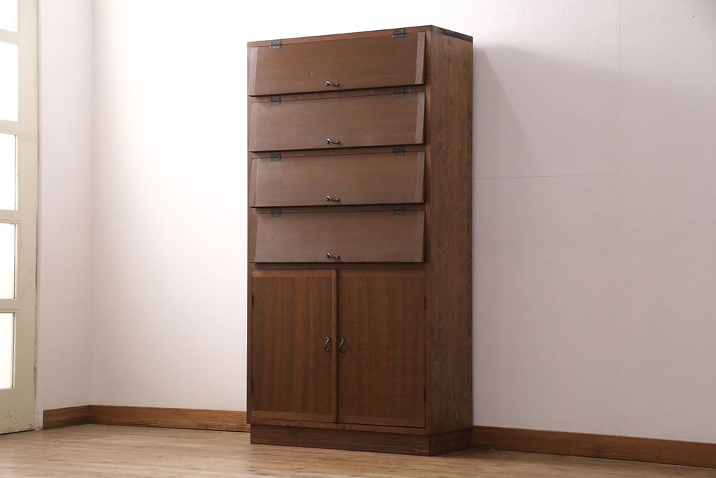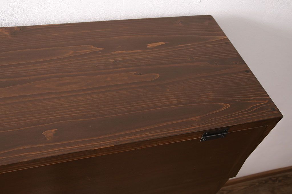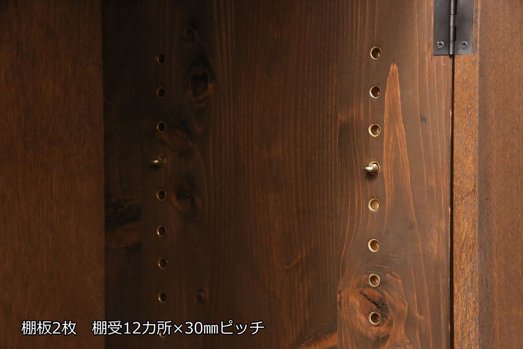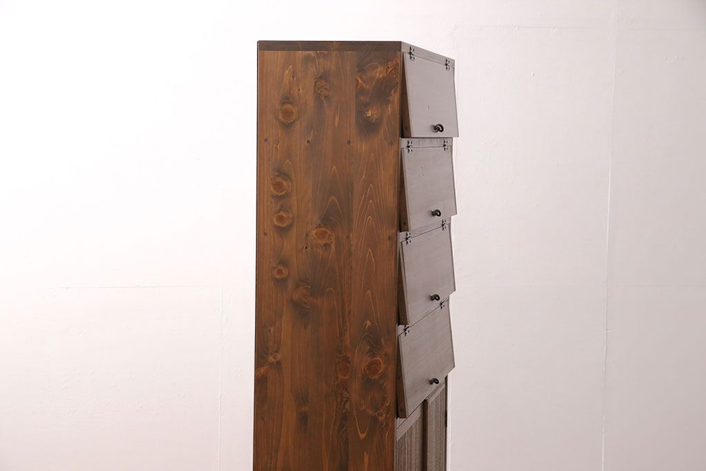 ワードローブ・ロッカー> ロッカー > パタパタ扉の下駄箱を新規製作!本体はヒノキ材、扉は古材を使用。当店商品を参考に取っ手を取り付け、着色し仕上げ。(収納棚、戸棚、キャビネット、ロッカー)