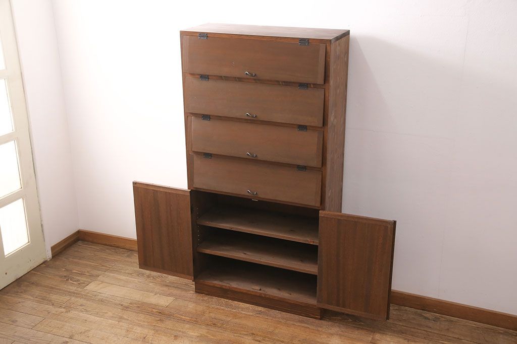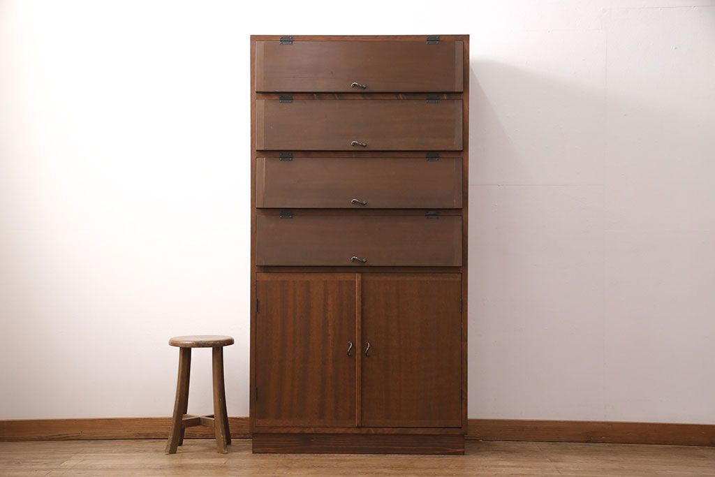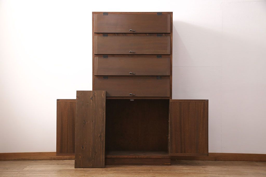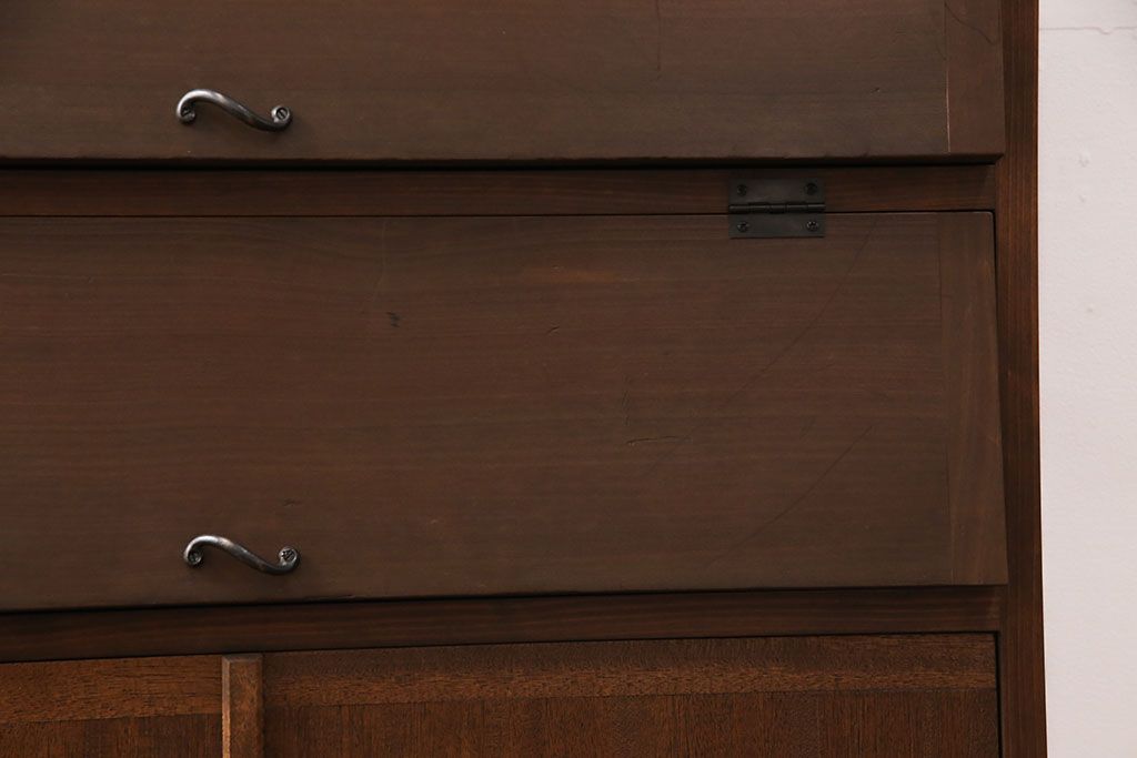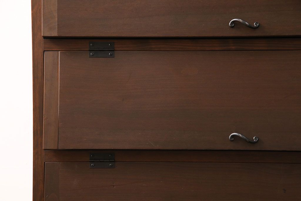 ワードローブ・ロッカー> ロッカー > パタパタ扉の下駄箱を新規製作!本体はヒノキ材、扉は古材を使用。当店商品を参考に取っ手を取り付け、着色し仕上げ。(収納棚、戸棚、キャビネット、ロッカー)