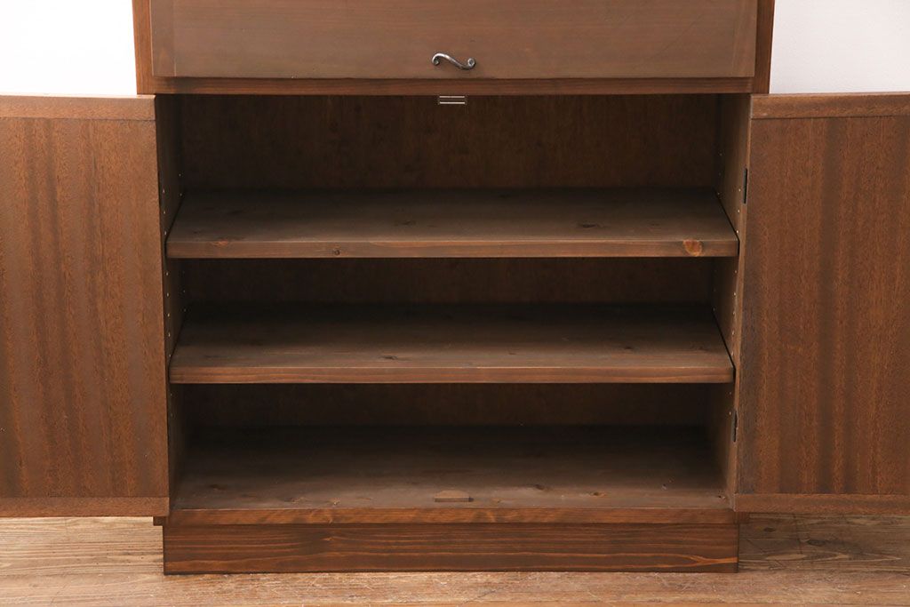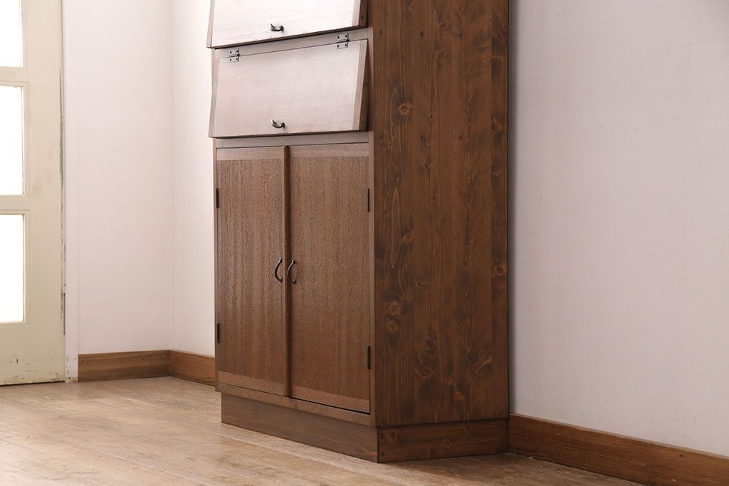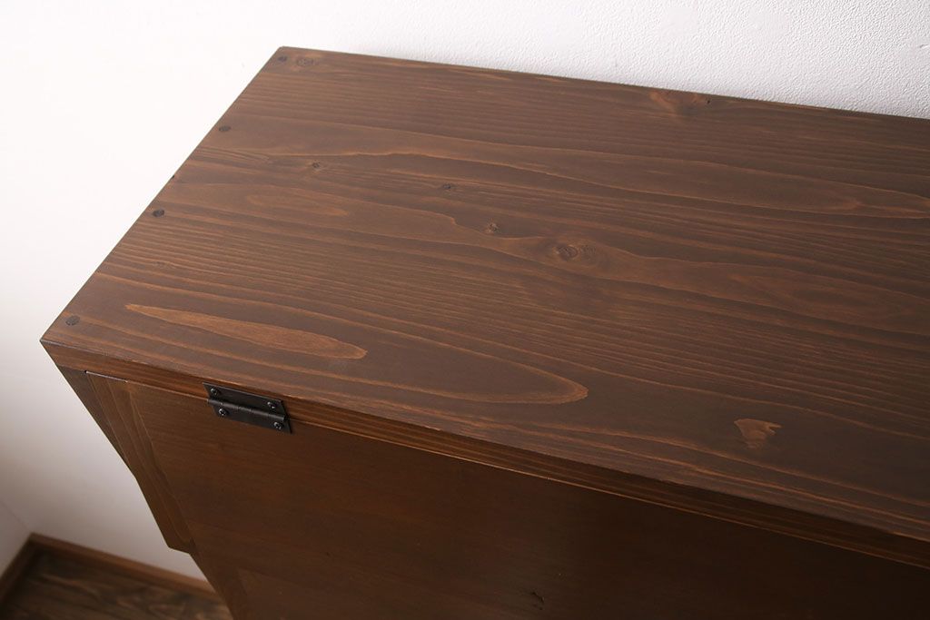 ワードローブ・ロッカー > パタパタ扉の下駄箱を新規製作!本体はヒノキ材、扉は古材を使用。当店商品を参考に取っ手を取り付け、着色し仕上げ。(収納棚、戸棚、キャビネット、ロッカー)