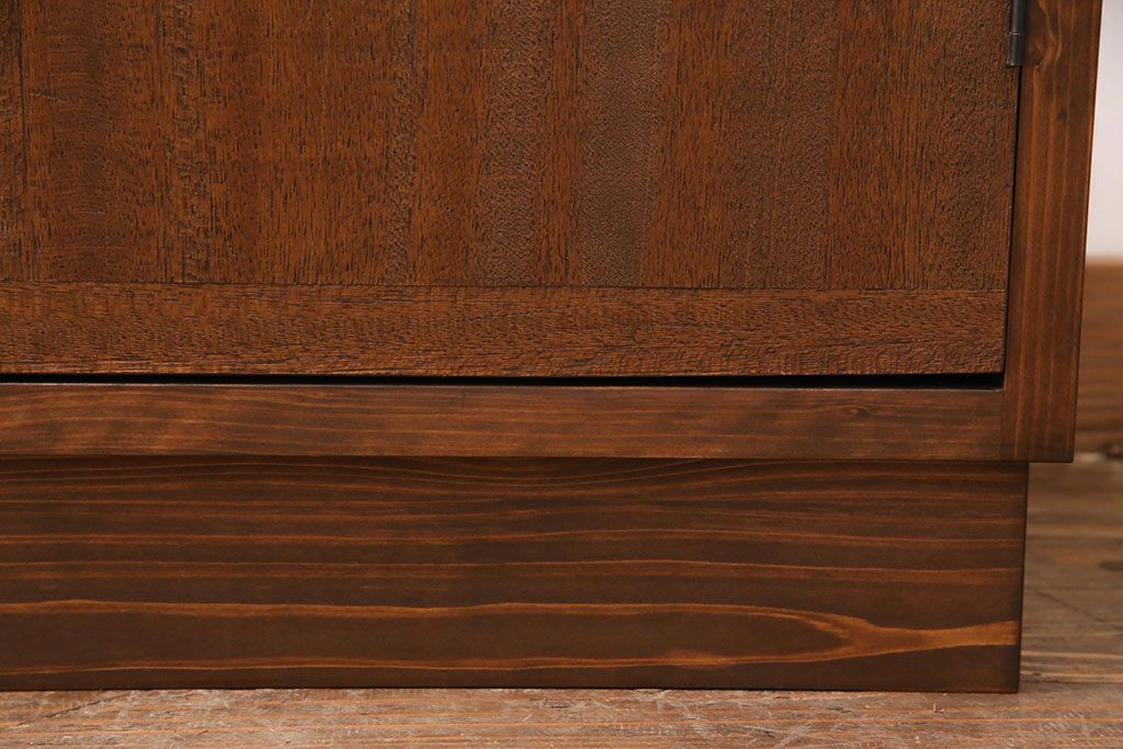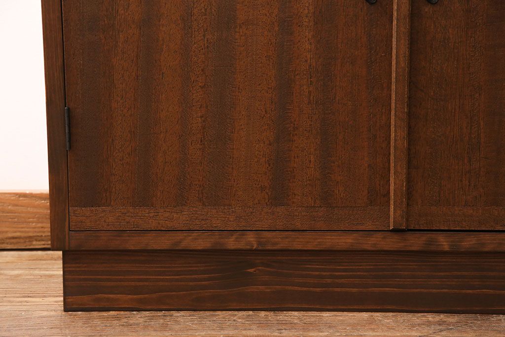 パタパタ扉の下駄箱を新規製作!本体はヒノキ材、扉は古材を使用。当店商品を参考に取っ手を取り付け、着色し仕上げ。(収納棚、戸棚、キャビネット、ロッカー)