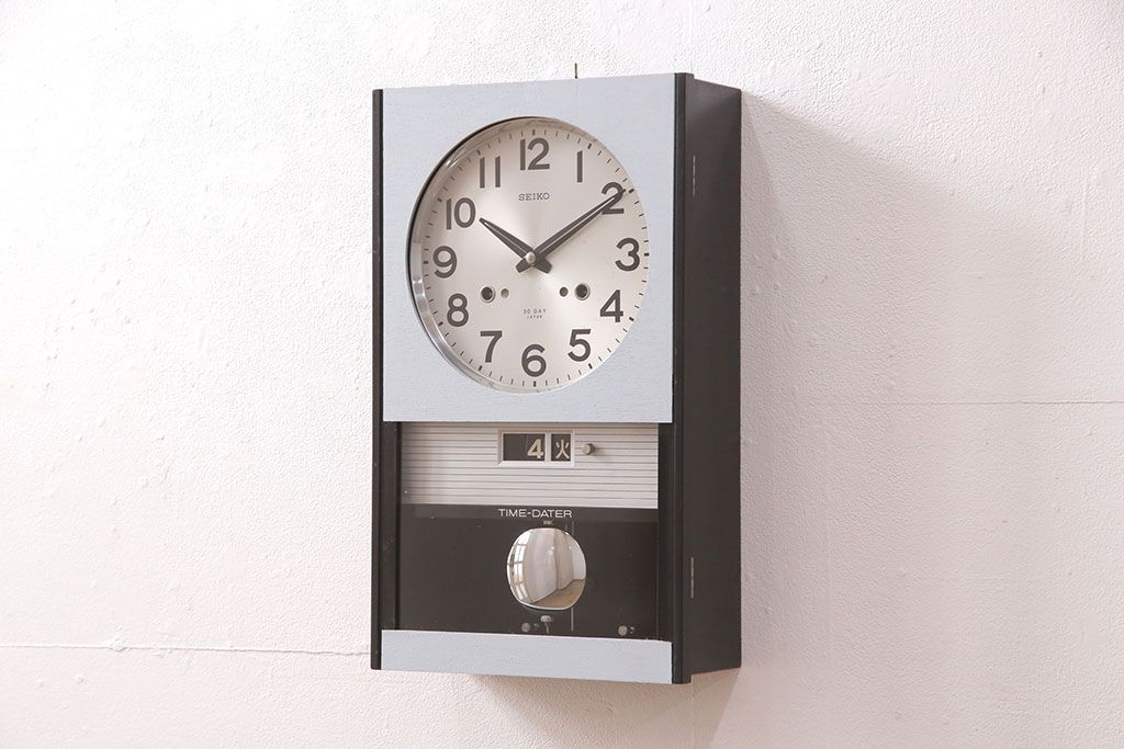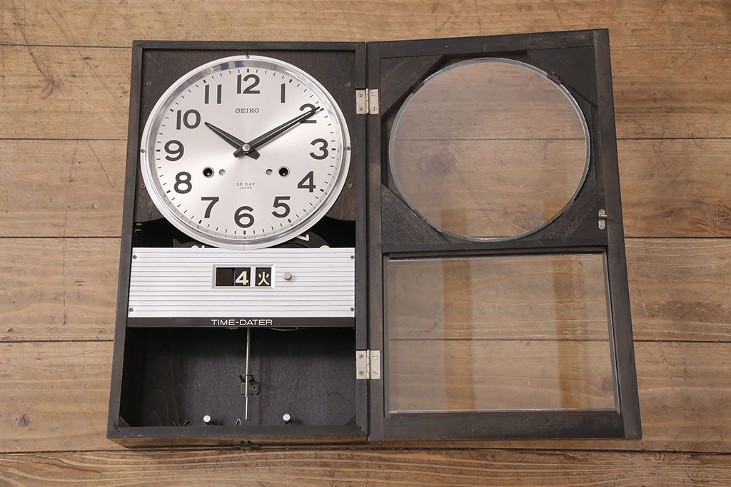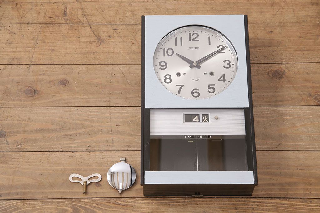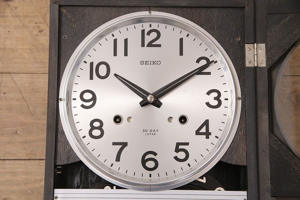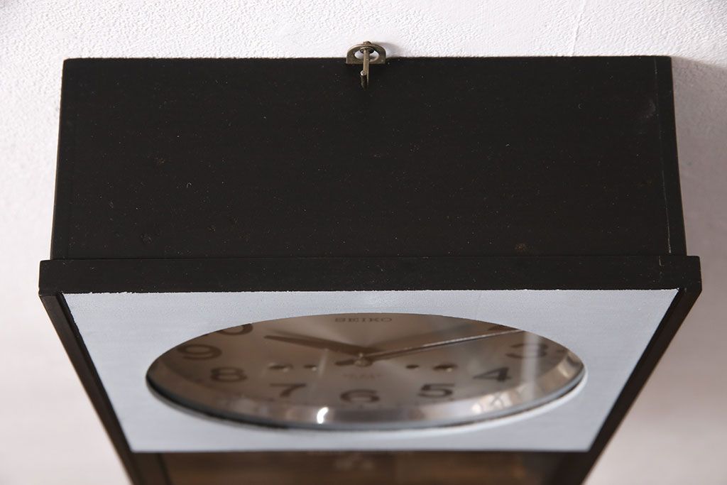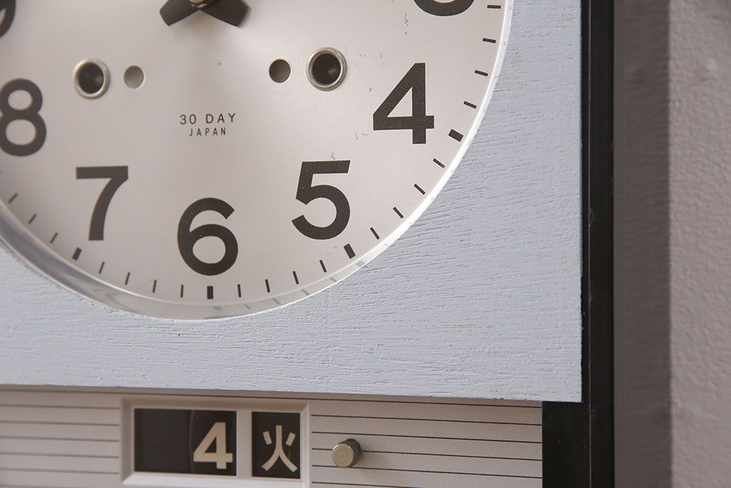 アンティーク雑貨 昭和レトロ ペイント ゼンマイ式 ミッドセンチュリーな雰囲気を醸しだす柱時計(振り子時計、掛け時計)(R-051127)