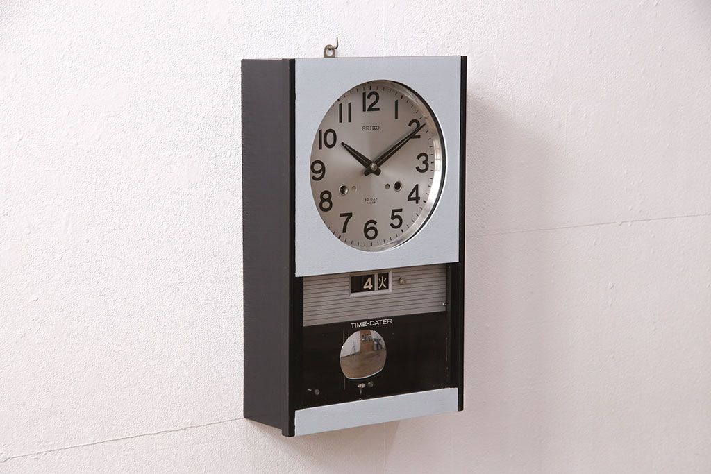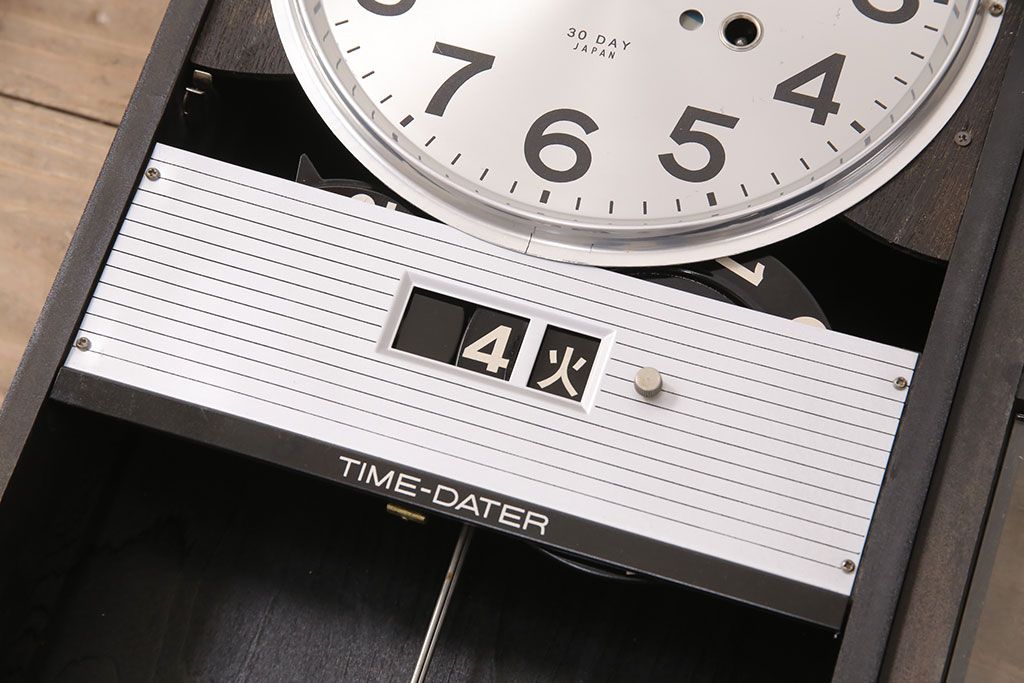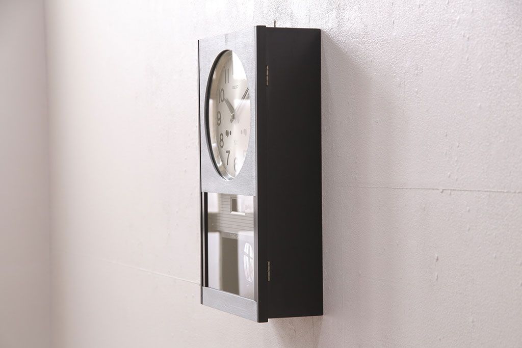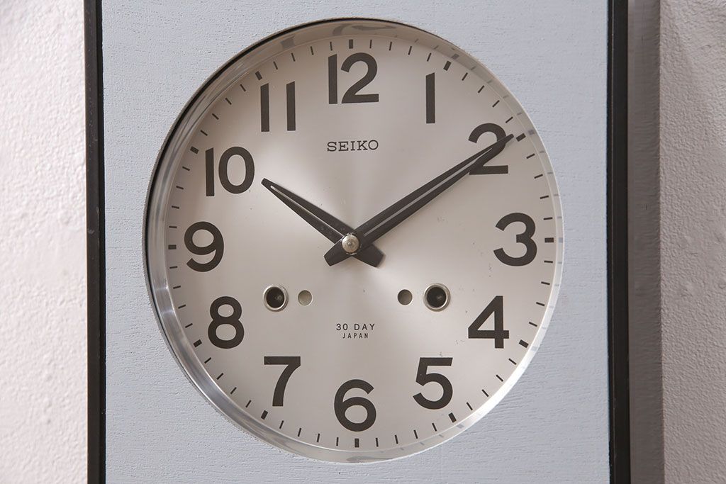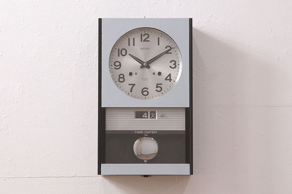 アンティーク雑貨 昭和レトロ ペイント ゼンマイ式 ミッドセンチュリーな雰囲気を醸しだす柱時計(振り子時計、掛け時計)(R-051127)です。