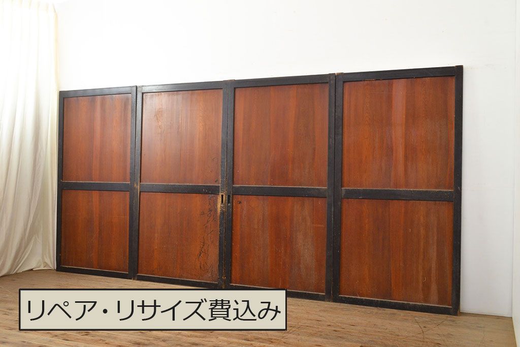 アンティーク建具 黒い框が和モダンな印象を高める板戸4枚セット(帯戸、引き戸)(R-051120)