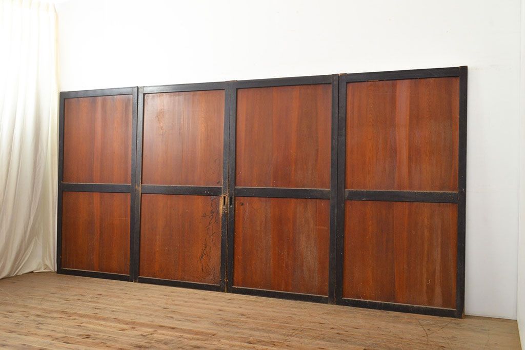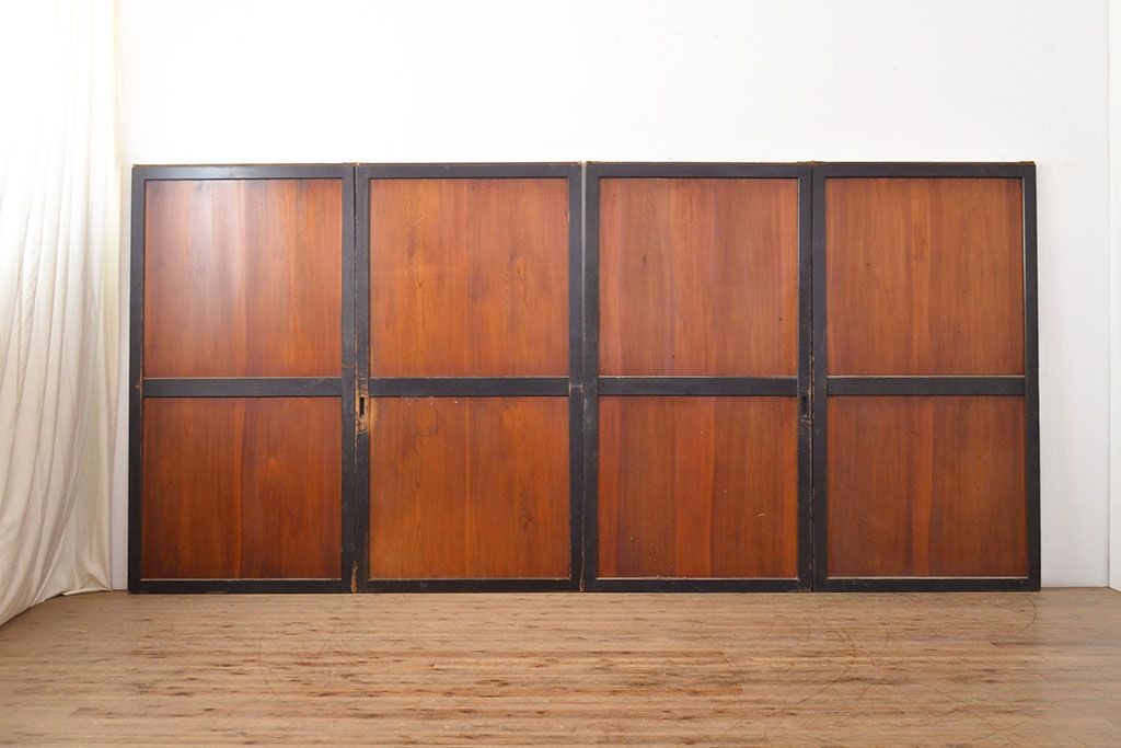 ラフジュ工房> ドア・建具> 4枚〜セット > アンティーク建具 黒い框が和モダンな印象を高める板戸4枚セット(帯戸、引き戸)(R-051120)