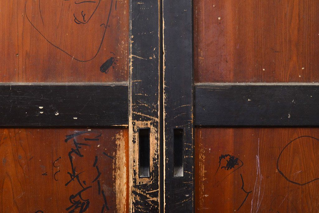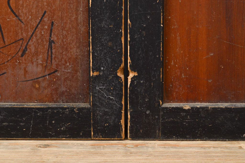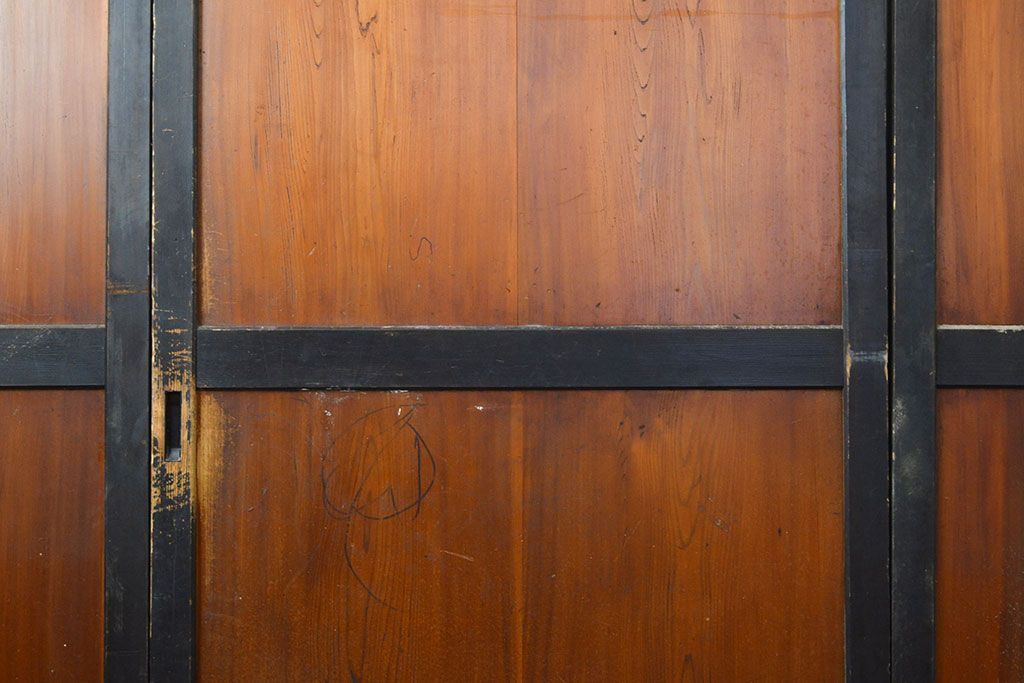 ラフジュ工房> ドア・建具> 引き戸 > アンティーク建具 黒い框が和モダンな印象を高める板戸4枚セット(帯戸、引き戸)(R-051120)