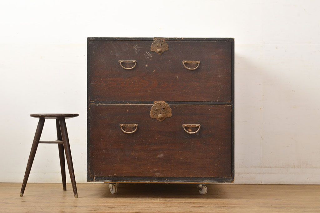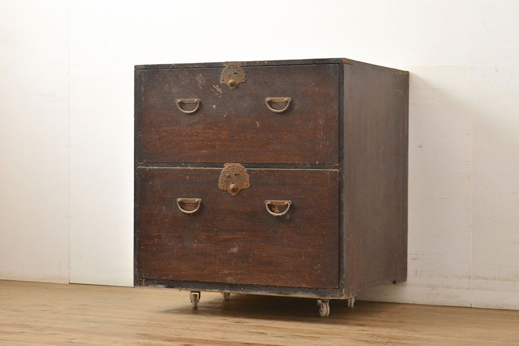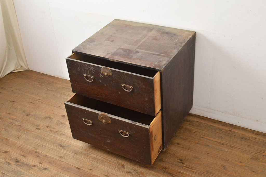 チェスト・引き出し > 和製アンティーク デザインとサイズが珍しい!引き出し2杯の和タンス(チェスト、作業台、カウンターテーブル)(R-051105)