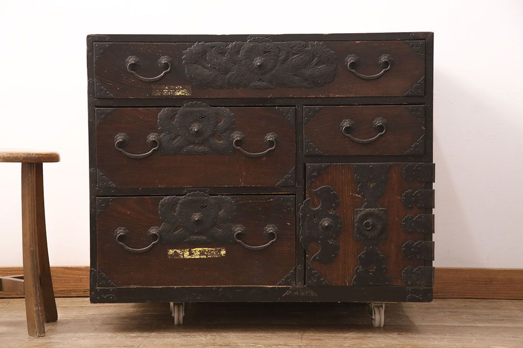 ラフジュ工房> 民芸家具 > 和製アンティーク 時を経た風合いが魅力!取り入れやすいサイズの岩谷堂箪笥(仙台箪笥、引き出し)(R-051034)