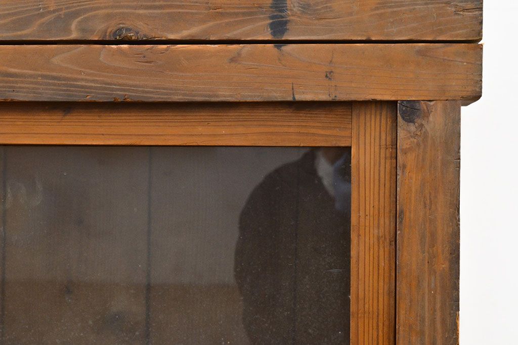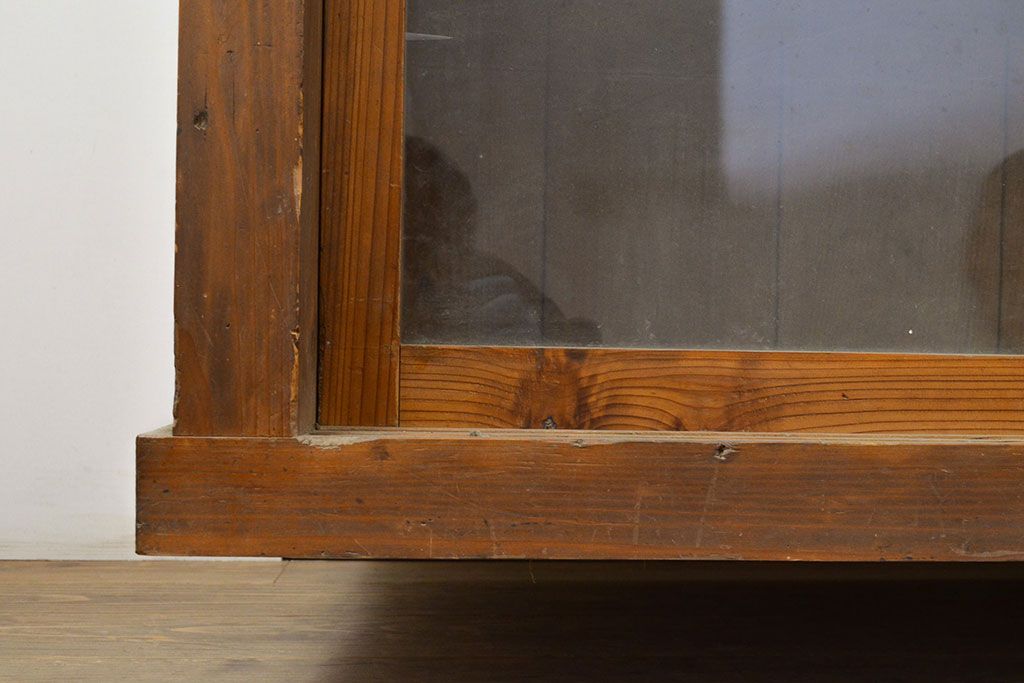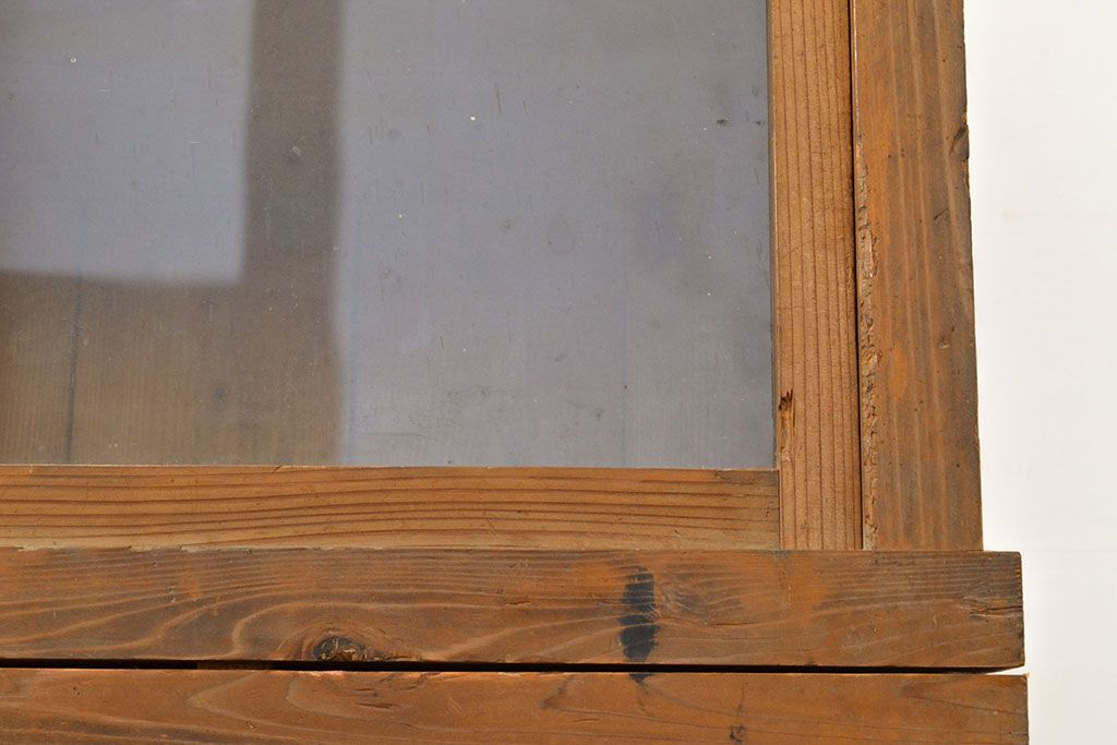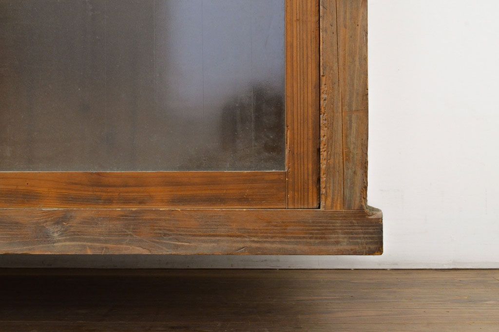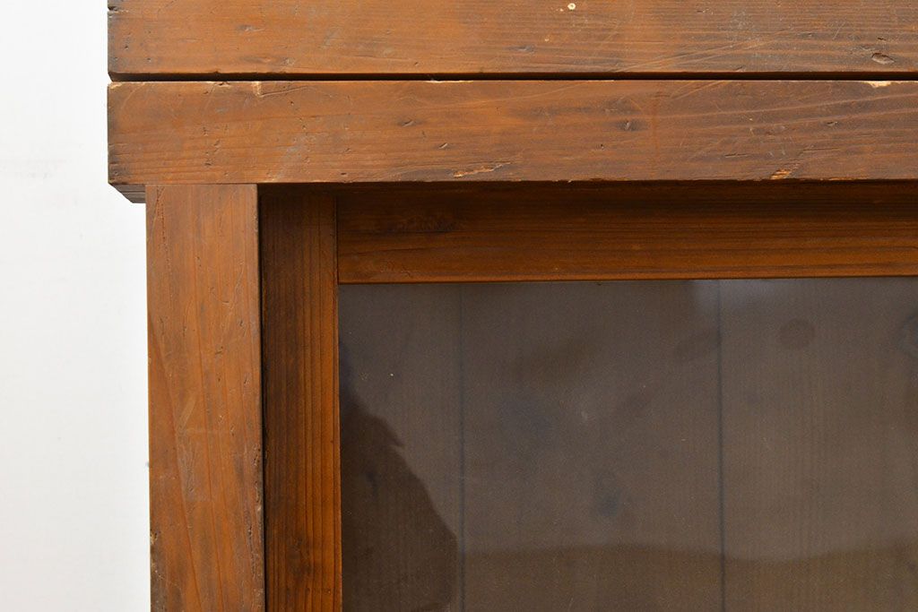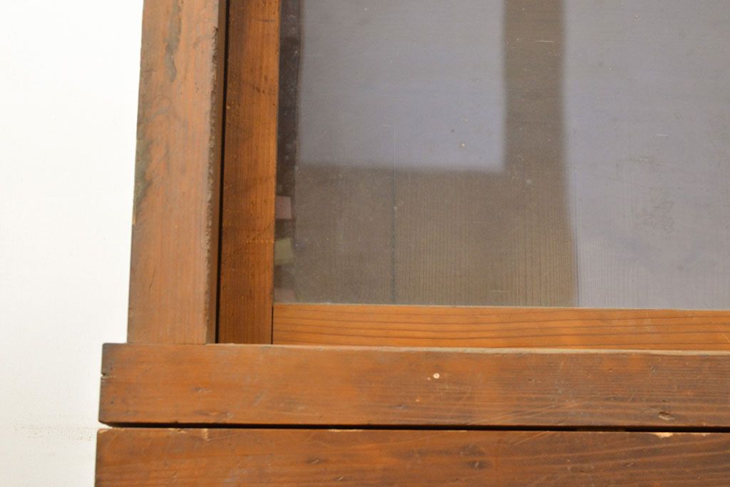 和製アンティーク 杉材 八尺もある特大サイズはレア!格子のガラスがノスタルジックな雰囲気を醸し出す重ね収納棚(ガラス戸棚、キャビネット、店舗什器)(R-051061)です。
