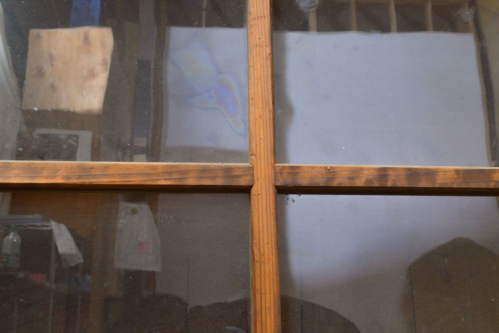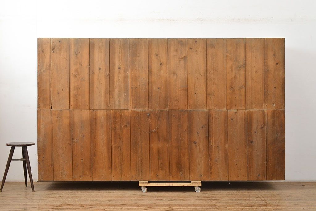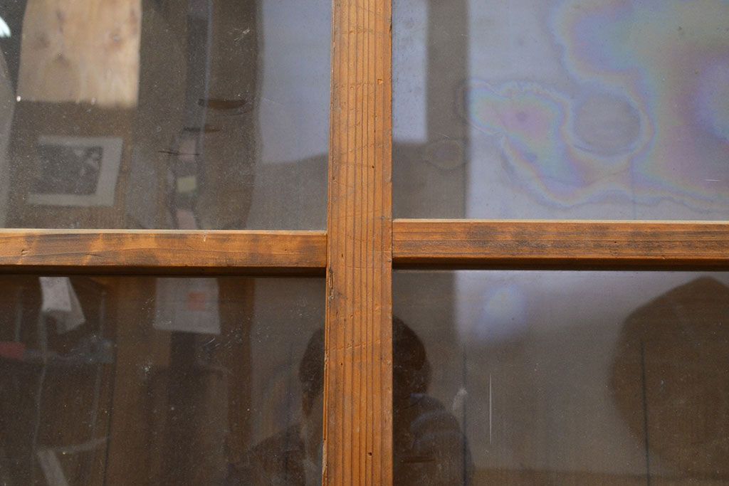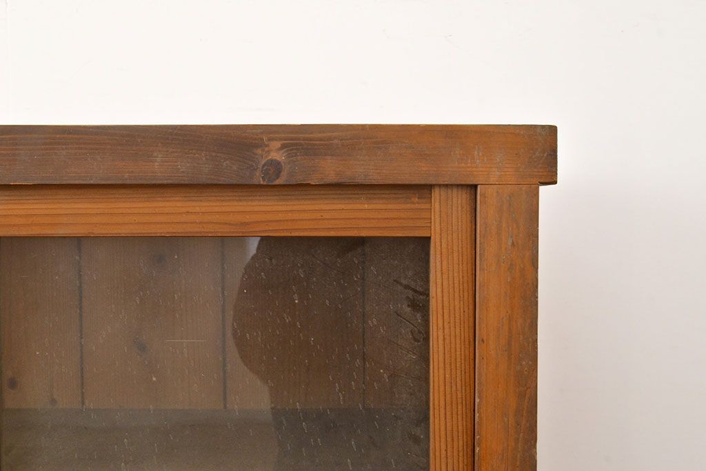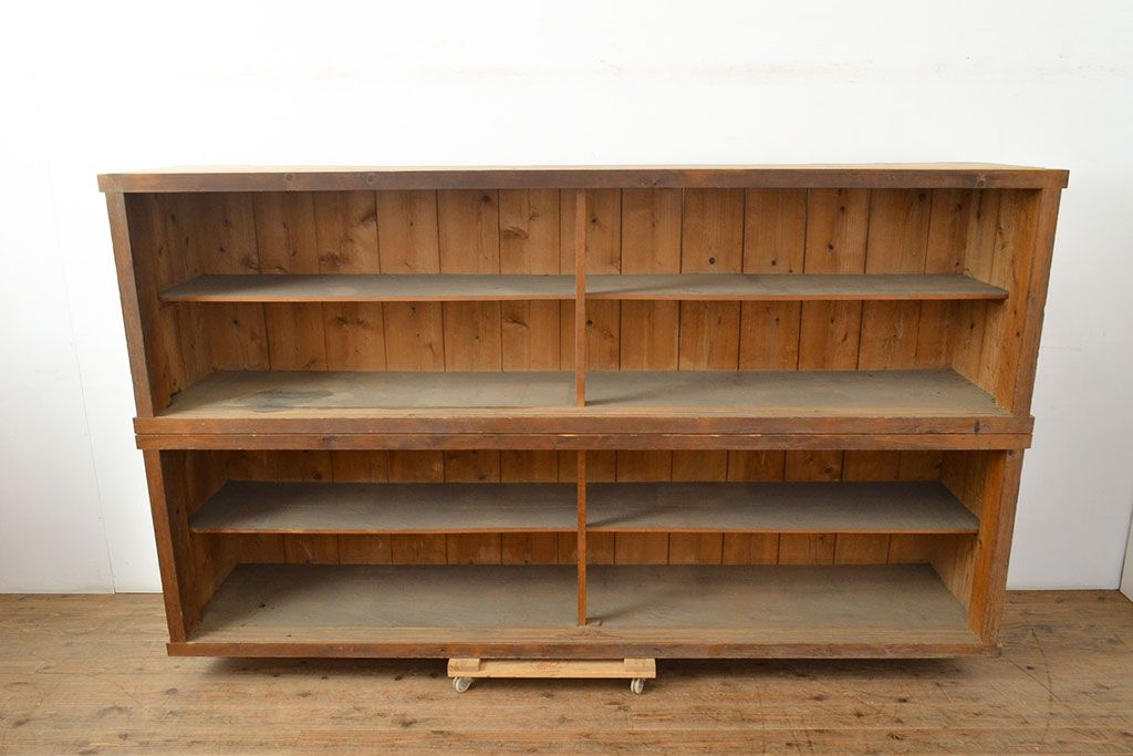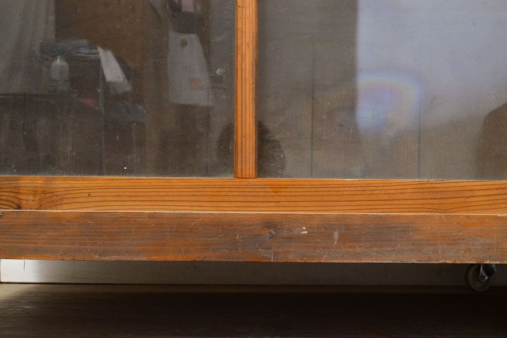 和製アンティーク 杉材 八尺もある特大サイズはレア!格子のガラスがノスタルジックな雰囲気を醸し出す重ね収納棚(ガラス戸棚、キャビネット、店舗什器)(R-051061)です。