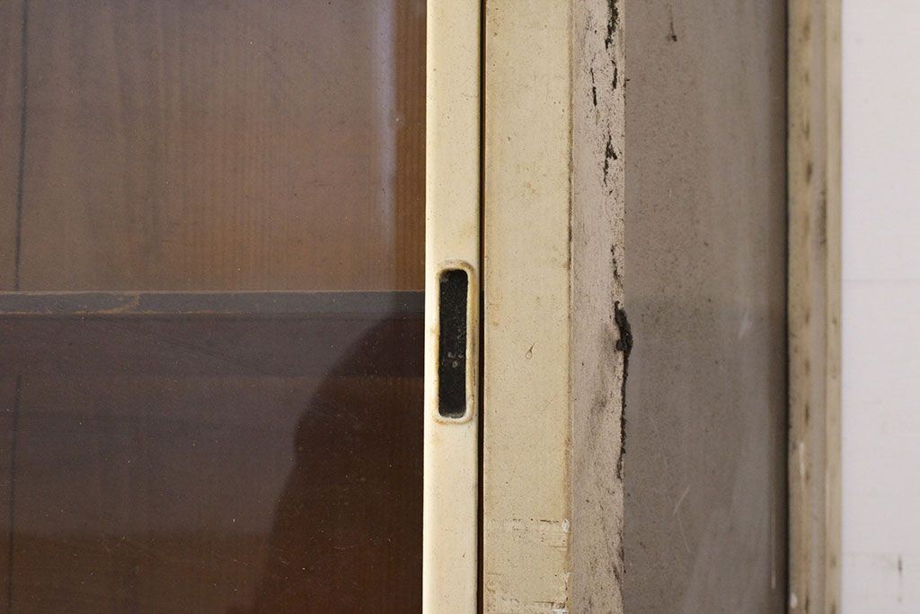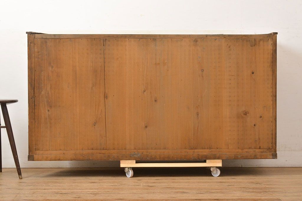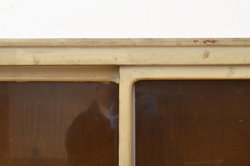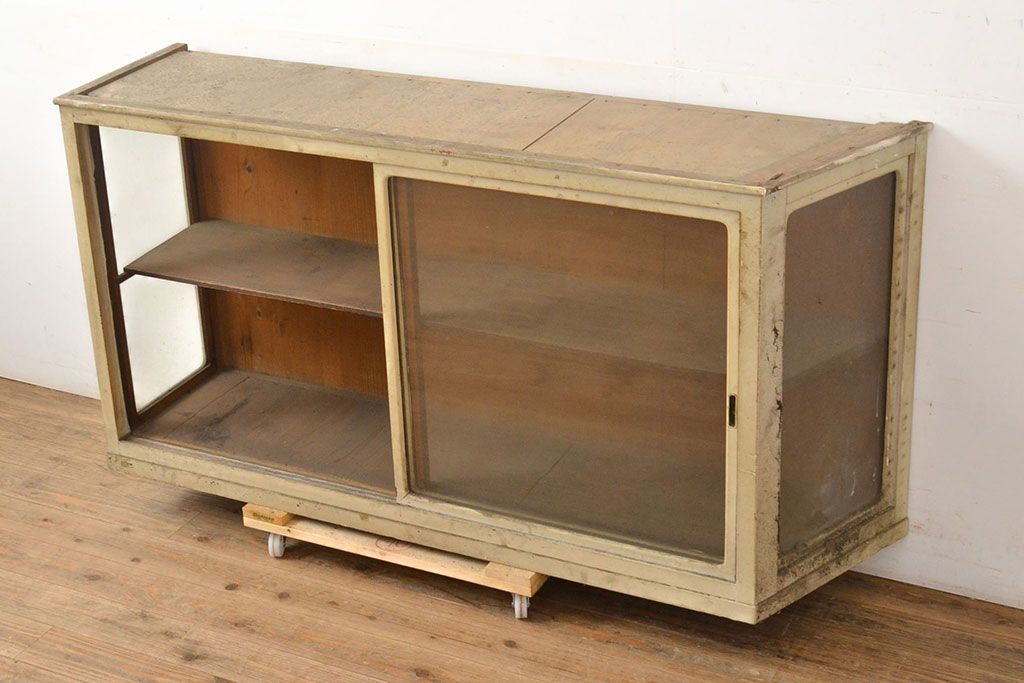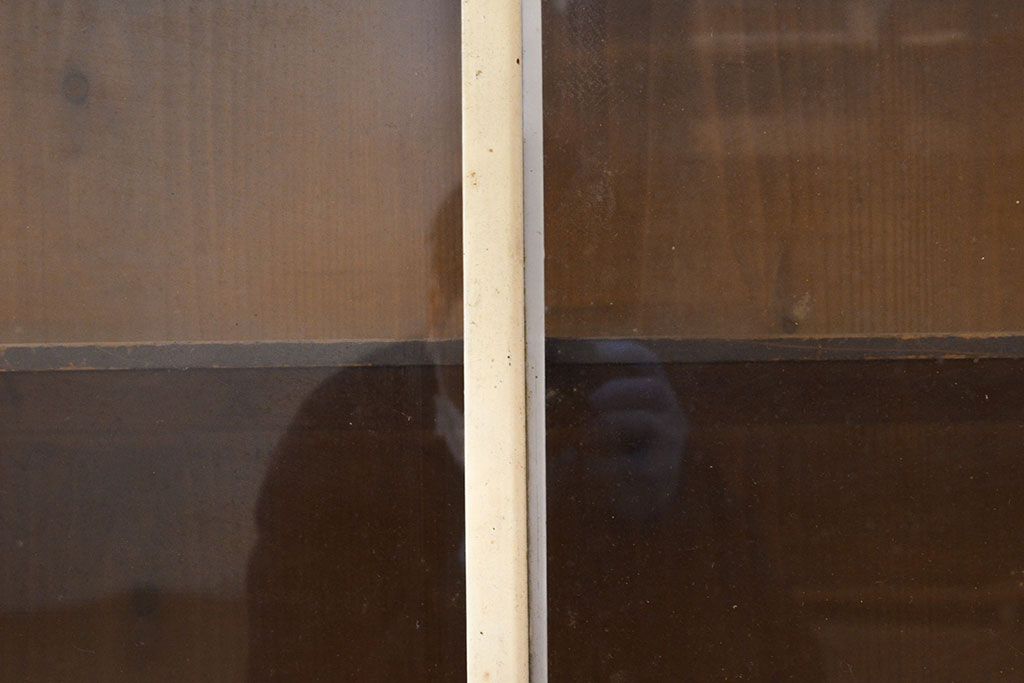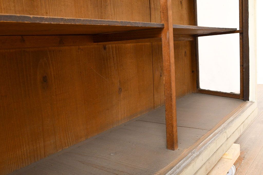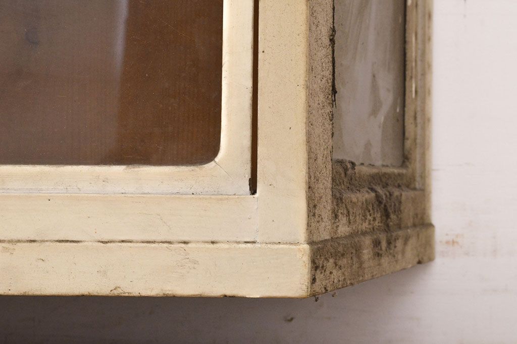 和製アンティーク 台形型がユニーク!シャビーなペイントがお洒落な3面ガラスの戸棚(収納棚、キャビネット)(R-051117)