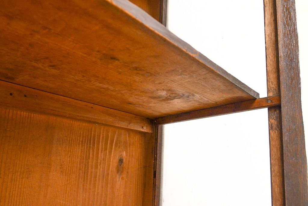 棚板は取り外しできます。棚板は1枚あります。棚受けは1ヶ所で調整できます。棚幅サイズのものが1枚の作りです。