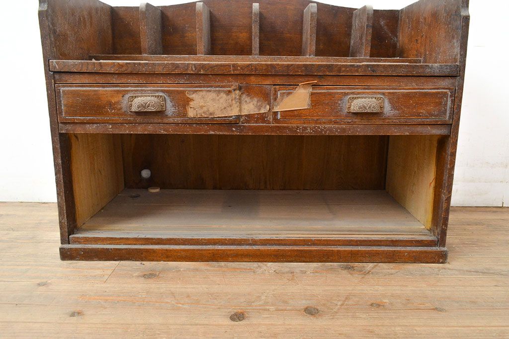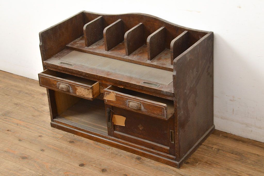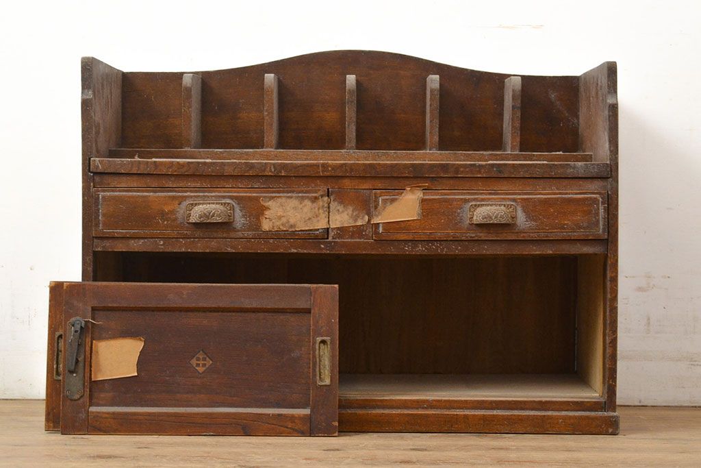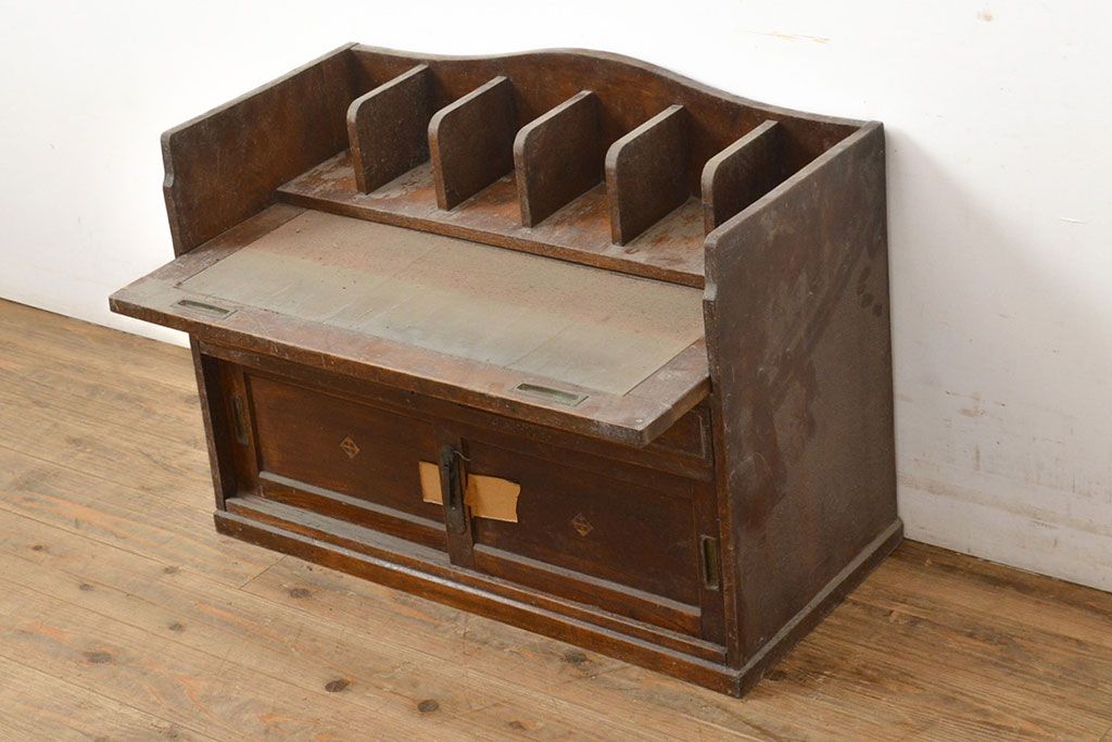 お問い合わせいただければ、優先してアップいたします。和製アンティーク 栓材 オープンなつくりの珍しいデザイン!昭和レトロなライティングビューロー(机、デスク、収納棚)(R-051118)です。