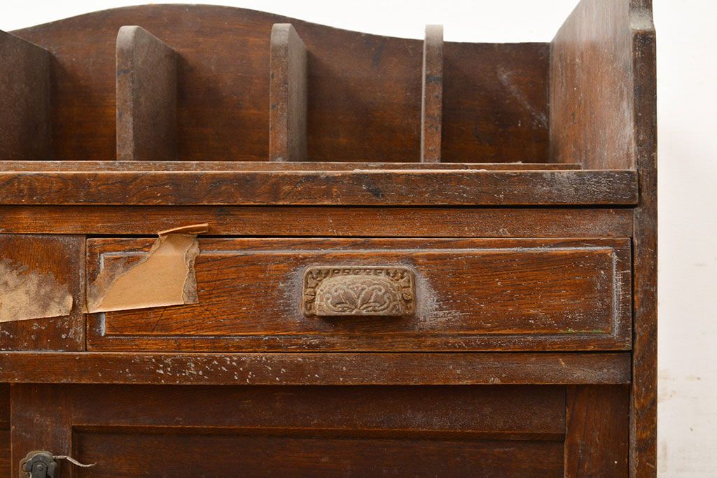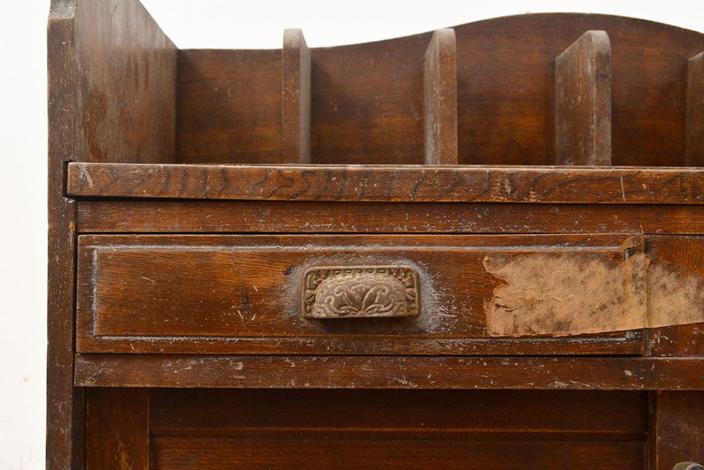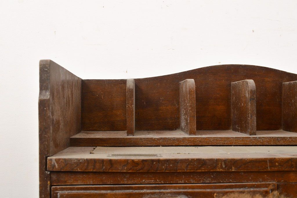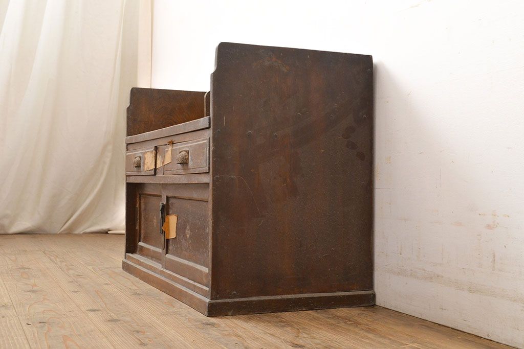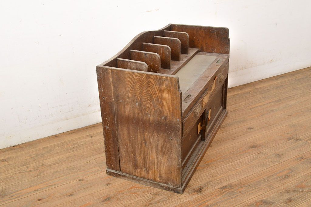 お問い合わせいただければ、優先してアップいたします。和製アンティーク 栓材 オープンなつくりの珍しいデザイン!昭和レトロなライティングビューロー(机、デスク、収納棚)(R-051118)です。