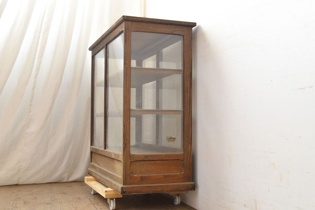 ラフジュ工房> ガラスケース・ショーケース > 和製アンティーク 栗材 昭和レトロ 引き出し3杯付きが嬉しい、懐かしい雰囲気のガラスケース(ショーケース、陳列棚、店舗什器)(R-050945)