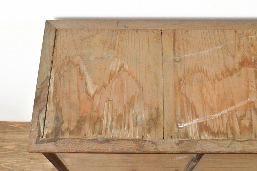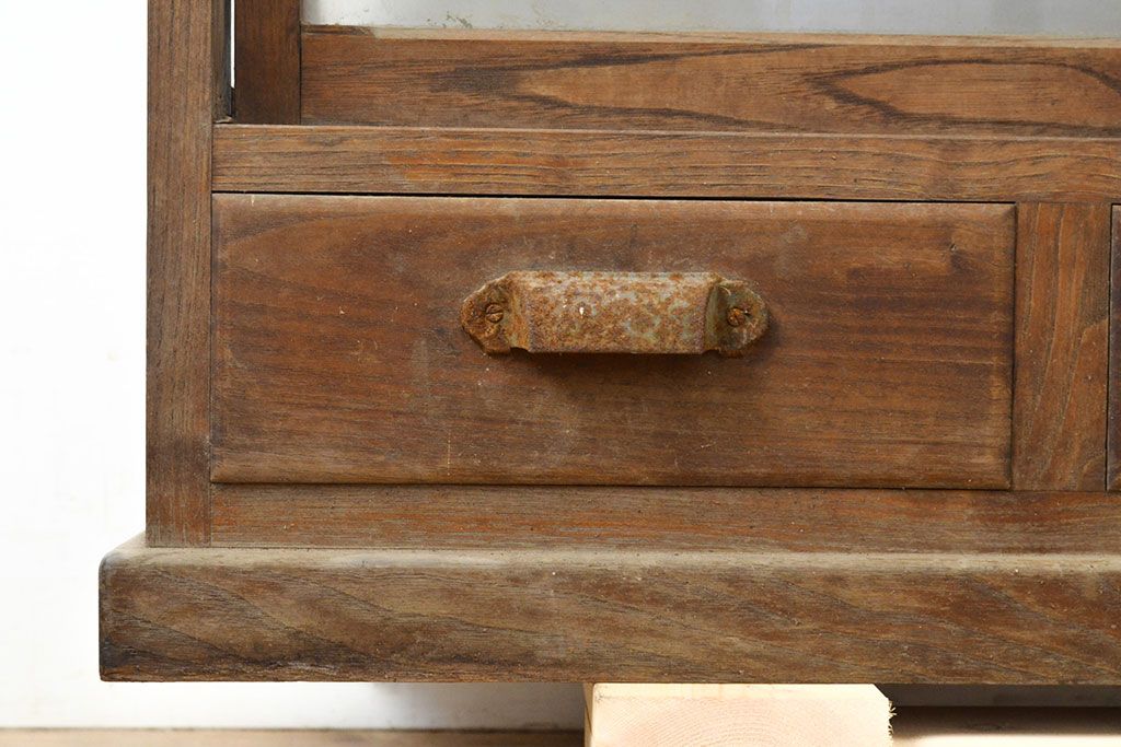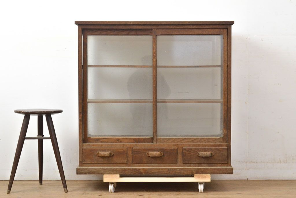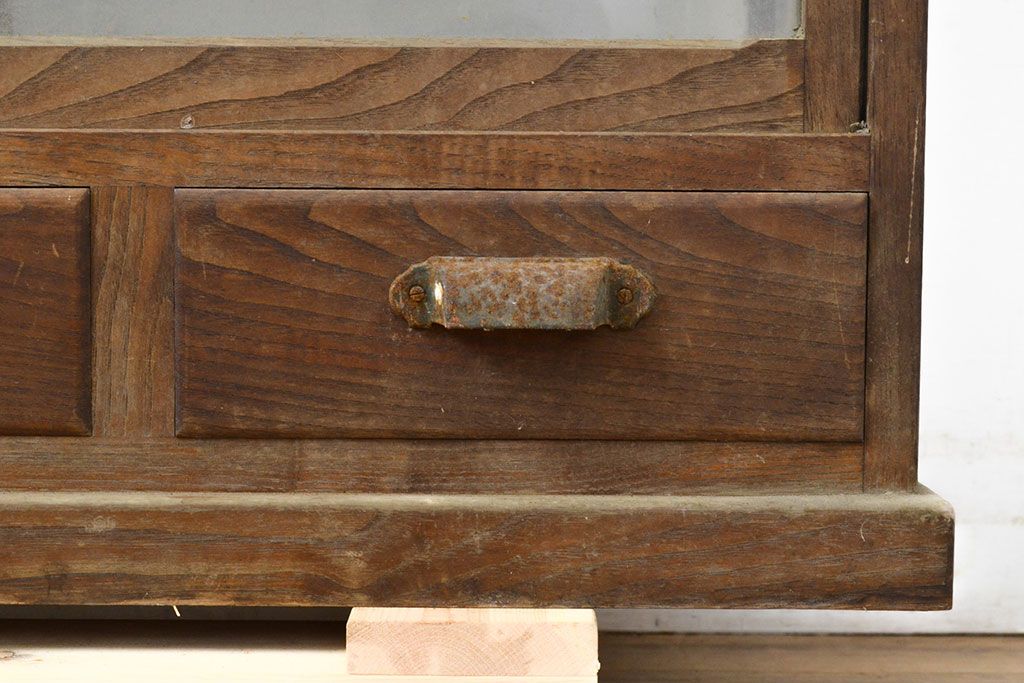 和製アンティーク 栗材 昭和レトロ 引き出し3杯付きが嬉しい、懐かしい雰囲気のガラスケース(ショーケース、陳列棚、店舗什器)(R-050945)
