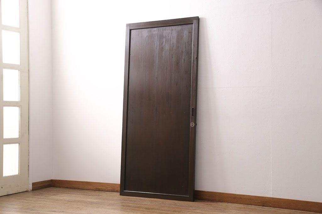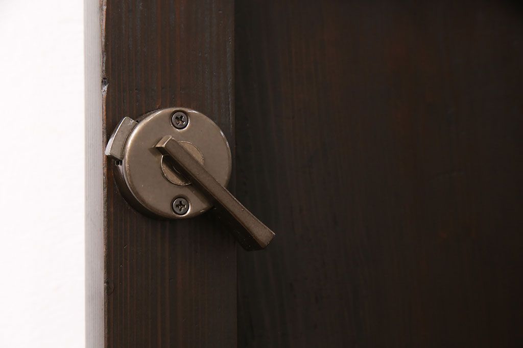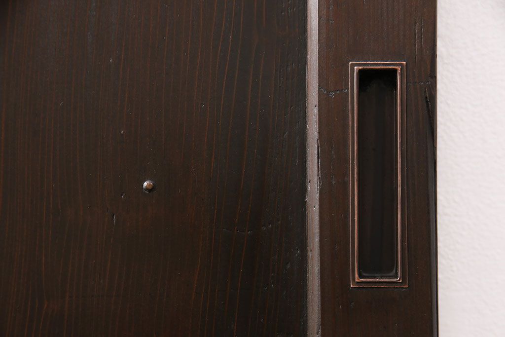 ドア・建具> 				引き戸				> 明治期の板戸をリペア&カスタム!戸車、引き手、トイレ表示用錠を取り付け。当店商品を参考に着色し仕上げ。(引き戸、建具)