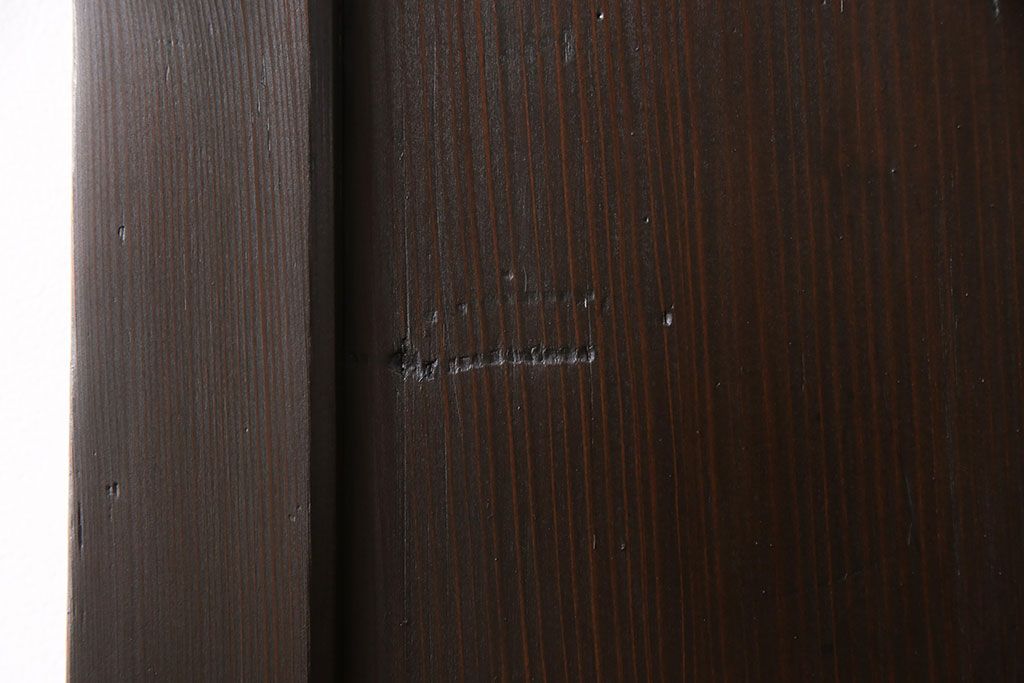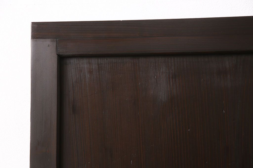 【ご注文加工品】板戸 【加工内容】 R-050337の仕上げ前商品を加工 ◆お品物に合わせた高品質リペア ◆サイズ変更:高さ1770mm→1757mm/幅940mm→830mm ◆平型戸車取り付け ◆葵戸引手取り付け ◆トイレ用表示錠取り付け ◆着色:参考商品 R-041236■奥行 30mm〜60mm ■框サイズ 上60mm/左45mm/右45mm/下45mm ■重量 約8kg