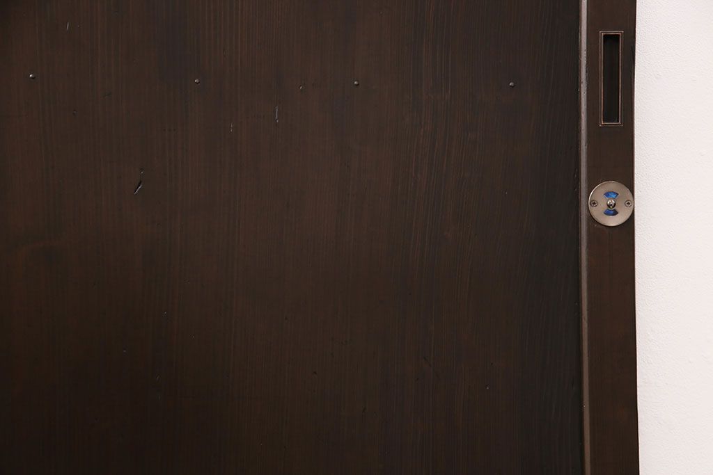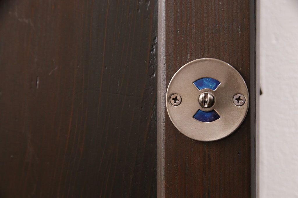 ドア・建具> 				板戸・帯戸				> 明治期の板戸をリペア&カスタム!戸車、引き手、トイレ表示用錠を取り付け。当店商品を参考に着色し仕上げ。(引き戸、建具)