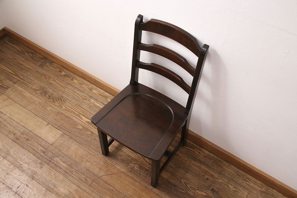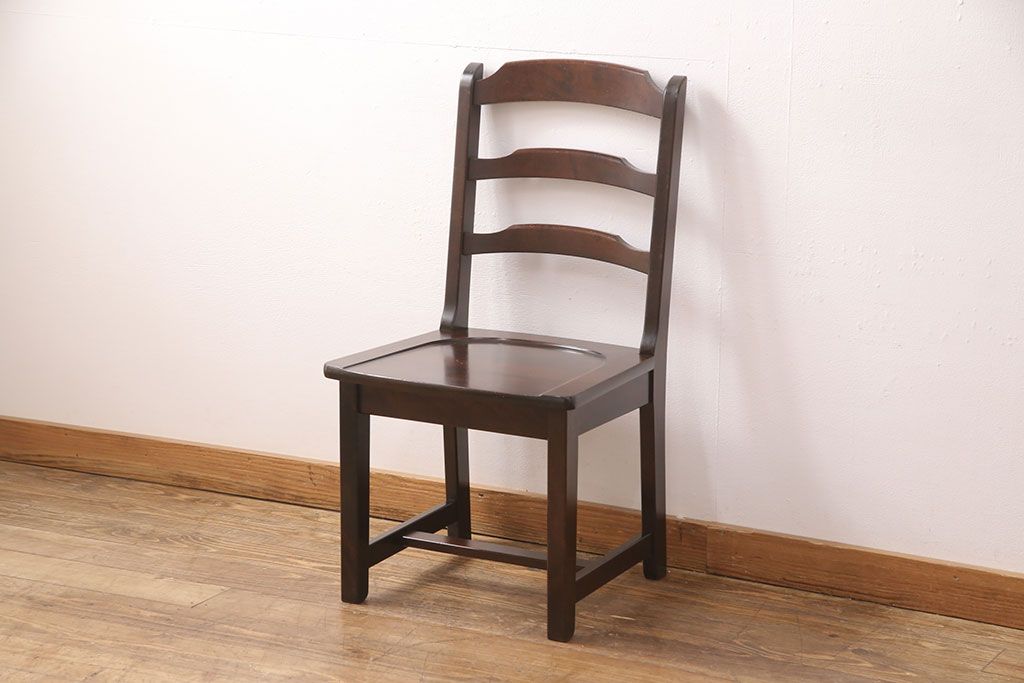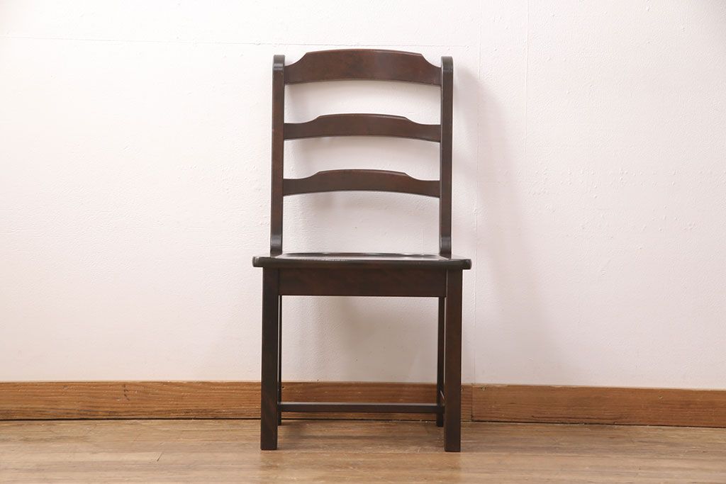 椅子・ベンチ> ダイニングチェア > 中古 北海道民芸家具 HM620 滑らかな木肌が上品なラダーバックチェア(椅子、ダイニングチェア、板座チェア)(R-051140)