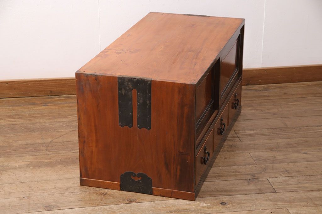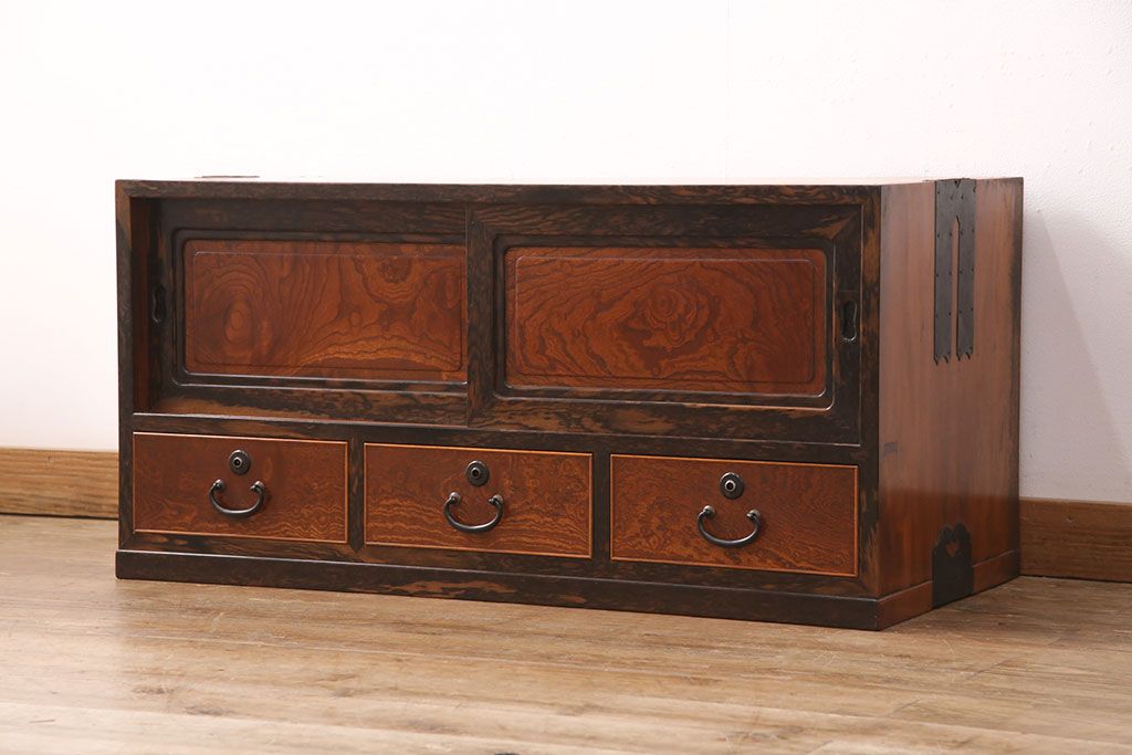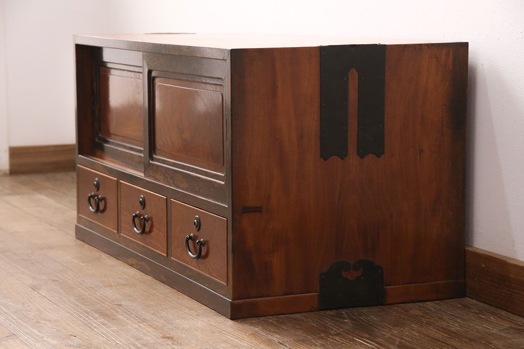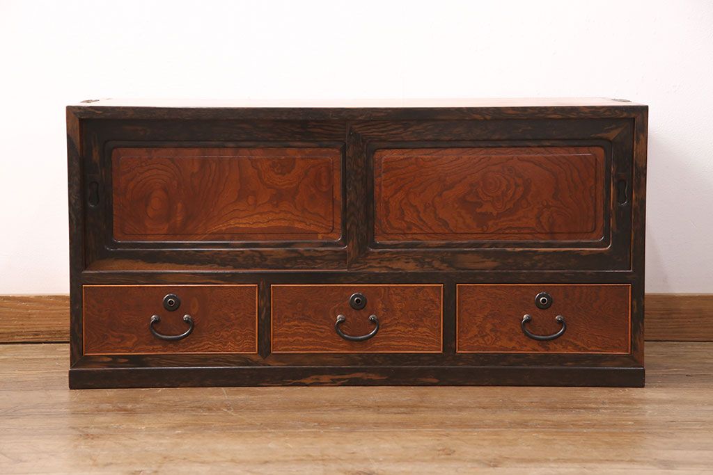 ローボードの見た目を変えずに綺麗にリペア!傷の補修を行い、その部分のみワックス仕上げ。(収納棚、引き出し、テレビ台)