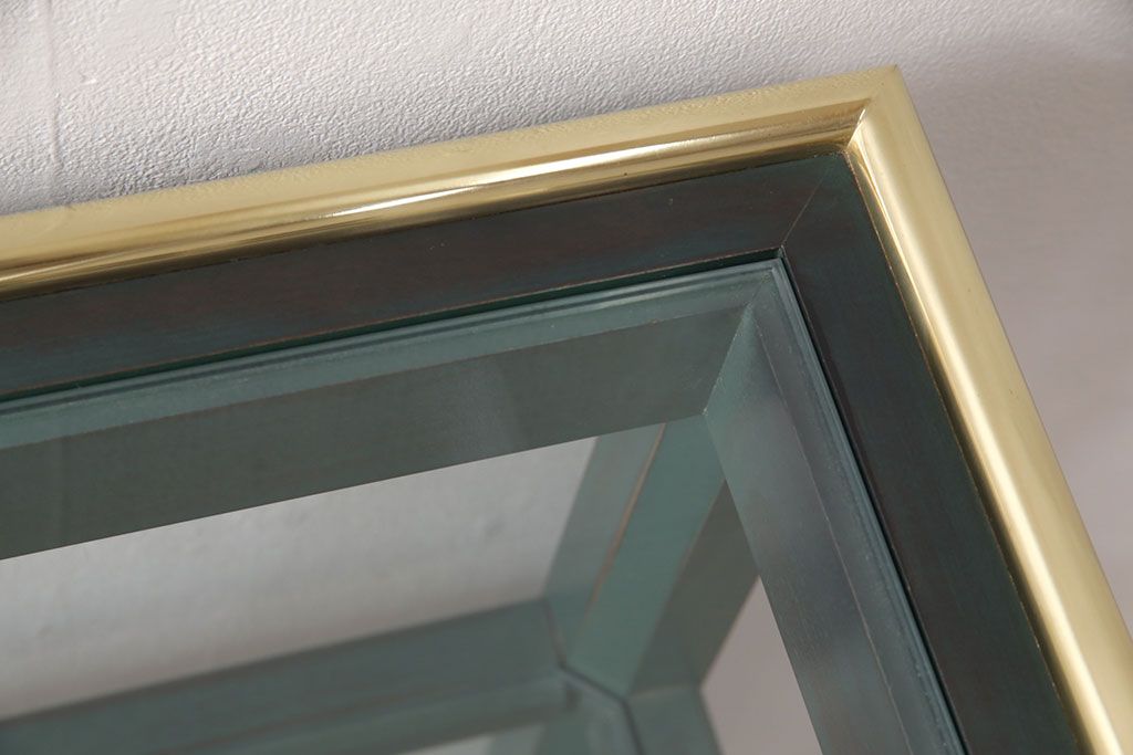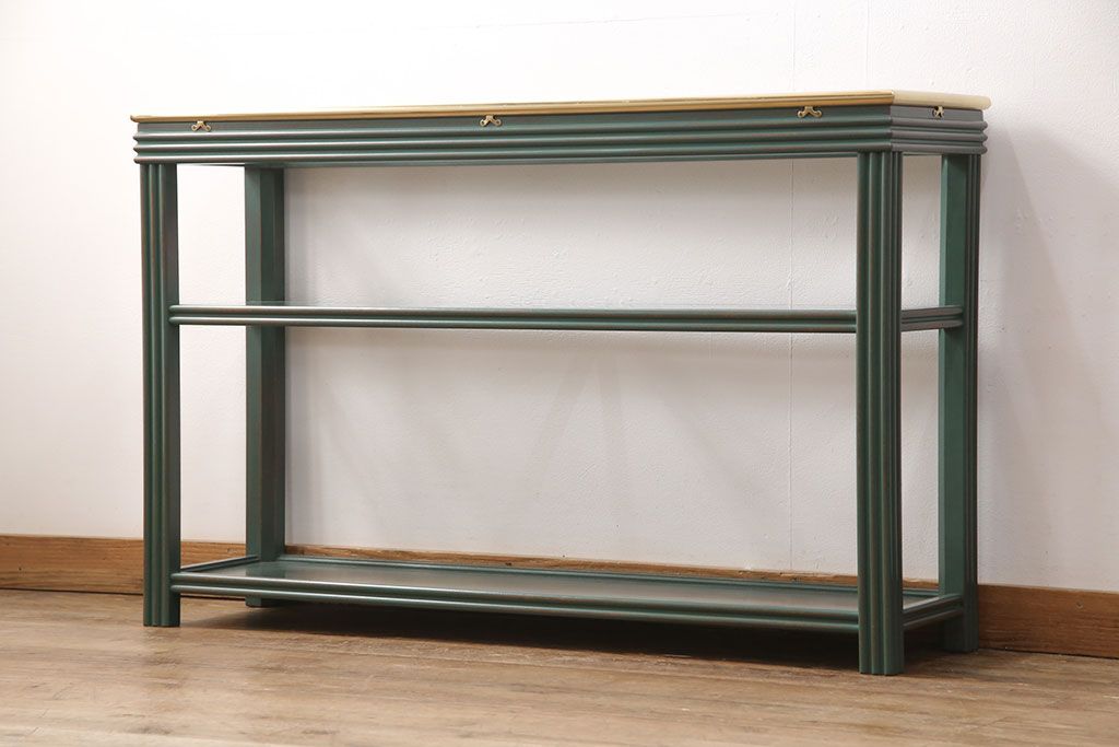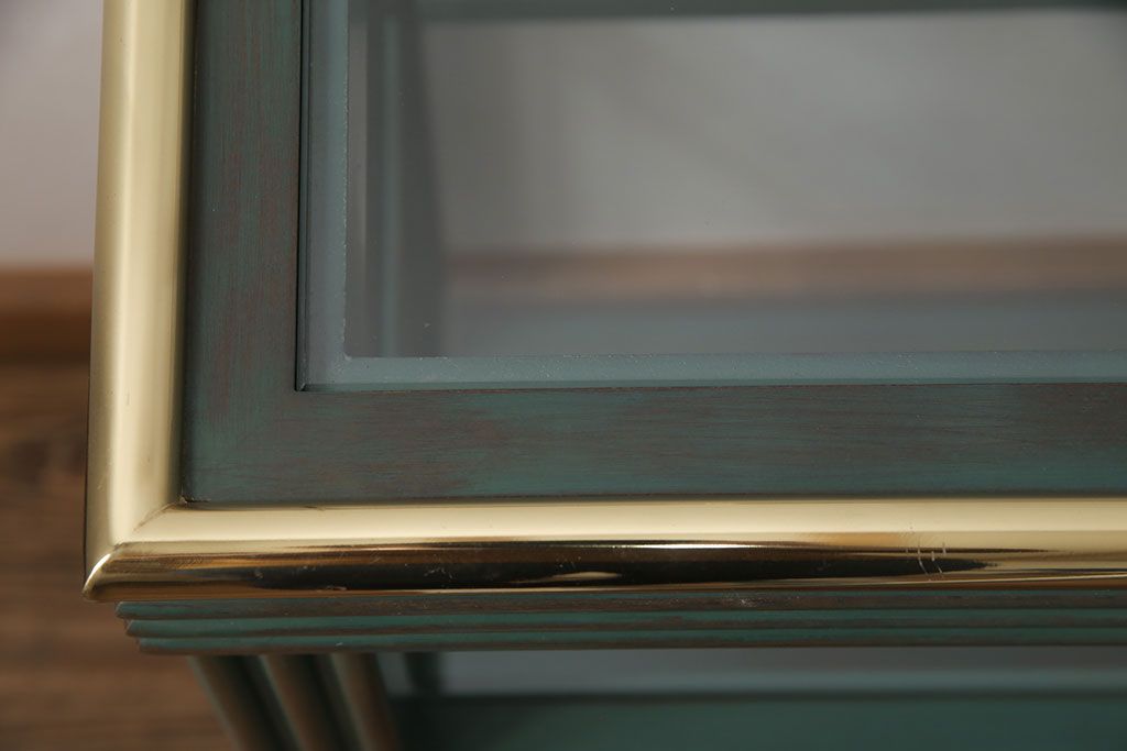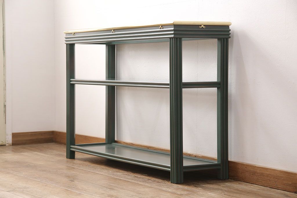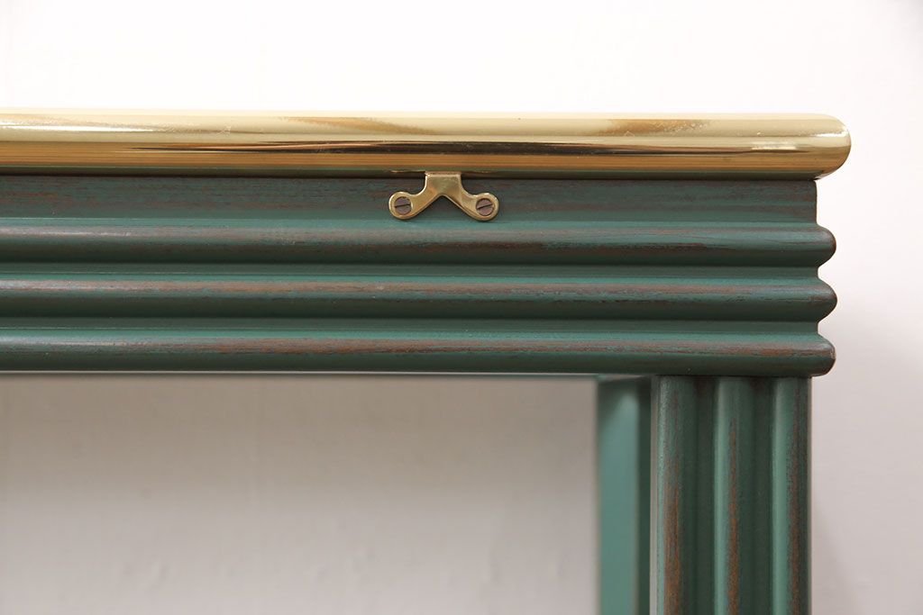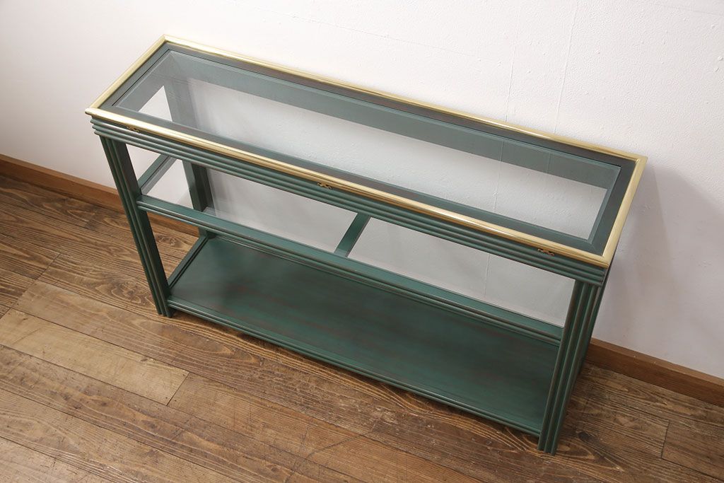 テーブル> コンソールテーブル > 中古 バロッサバレンティ(VARO,S.A. VALENTI) アルタミラ グリーンとゴールドの組み合わせが高級感を醸し出すコンソールテーブル(ガラステーブル、ナイトテーブル、飾り棚、陳列棚、店舗什器)(定価約26万円)(R-051131)
