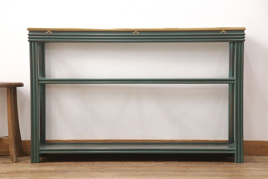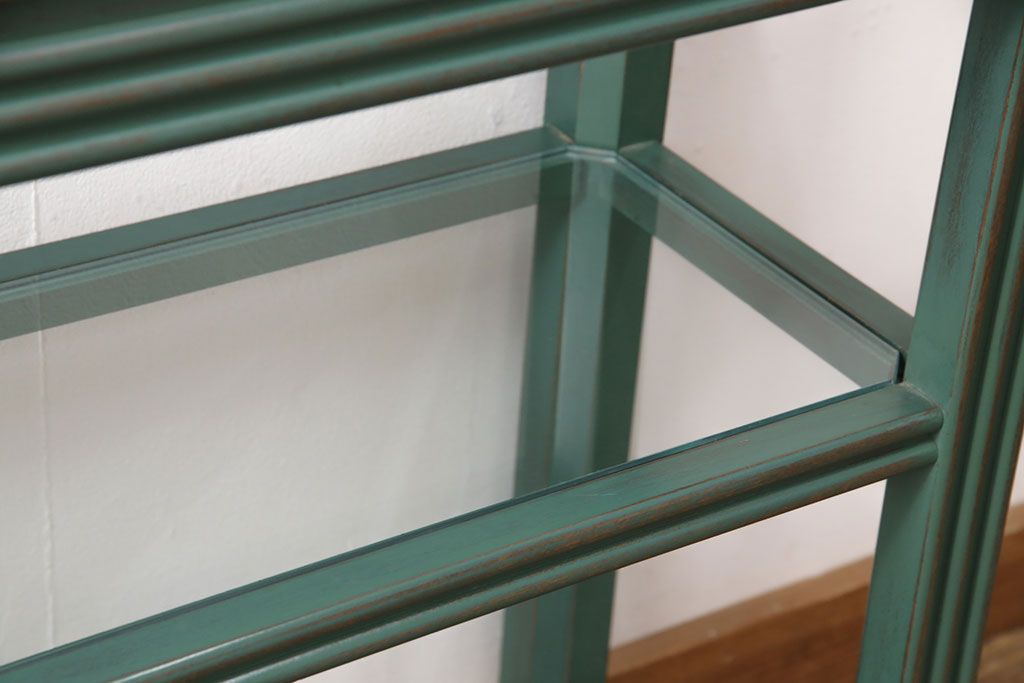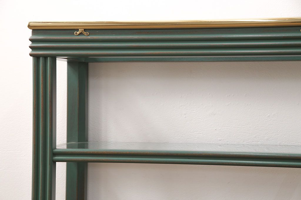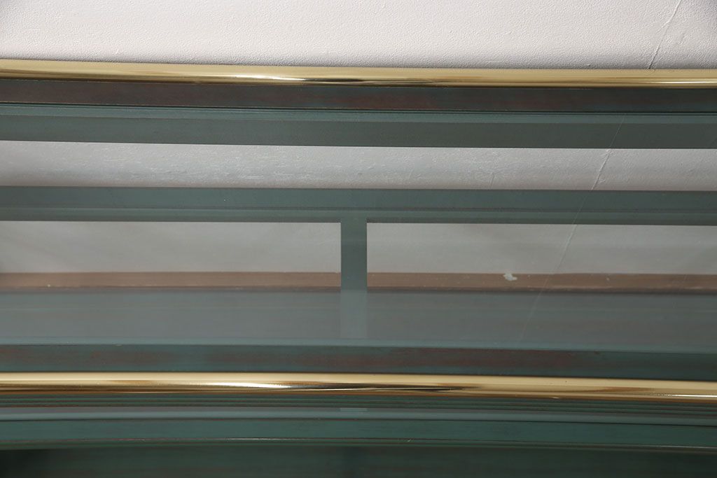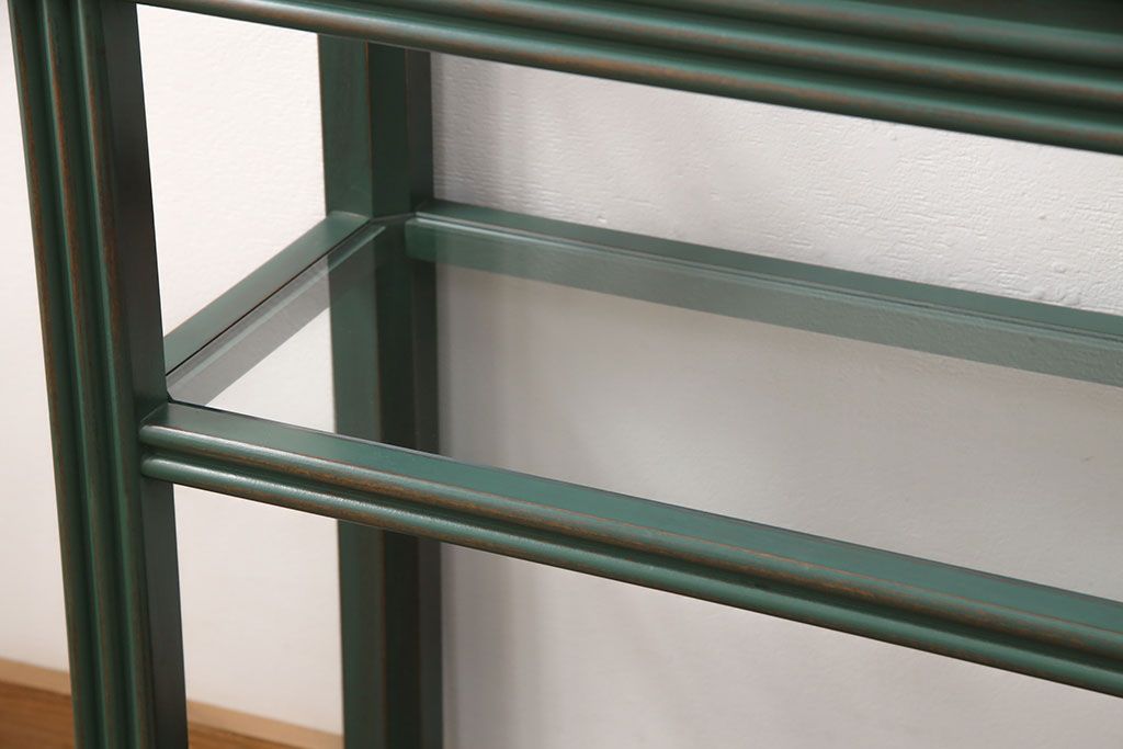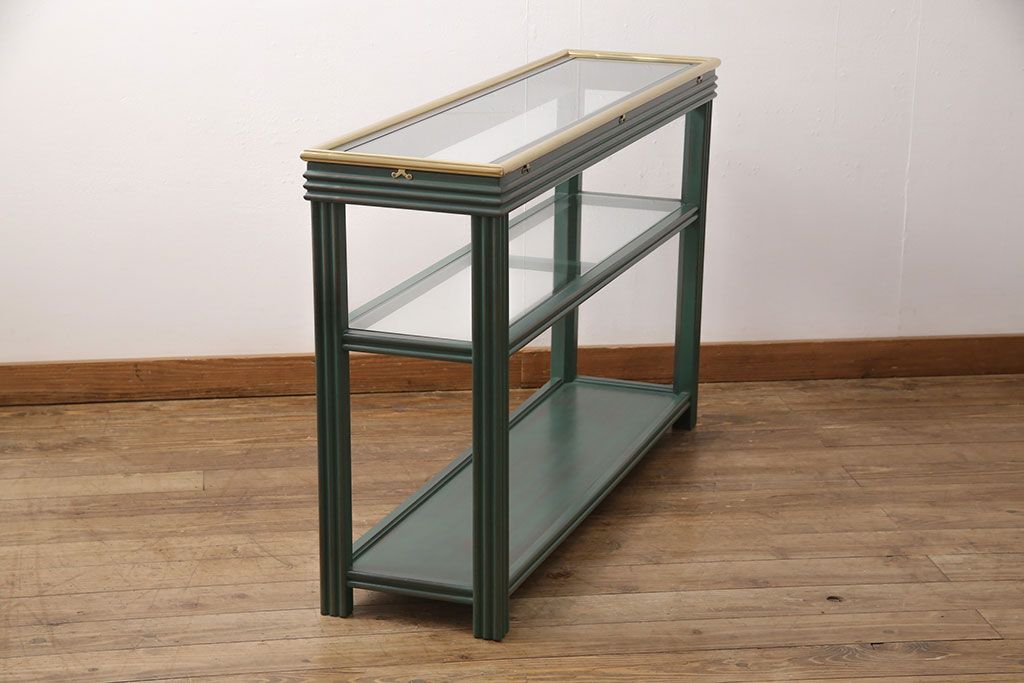 オープンラック・シェルフ> ディスプレイラック > 中古 バロッサバレンティ(VARO,S.A. VALENTI) アルタミラ グリーンとゴールドの組み合わせが高級感を醸し出すコンソールテーブル(ガラステーブル、ナイトテーブル、飾り棚、陳列棚、店舗什器)(定価約26万円)(R-051131)