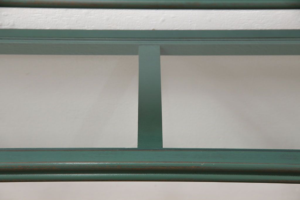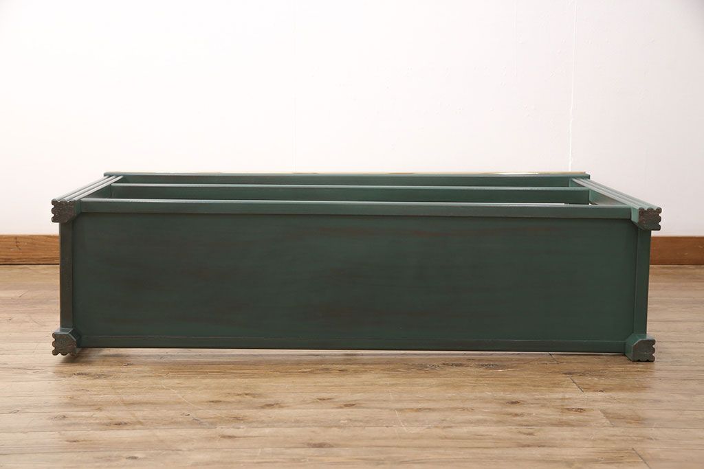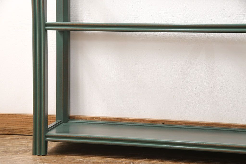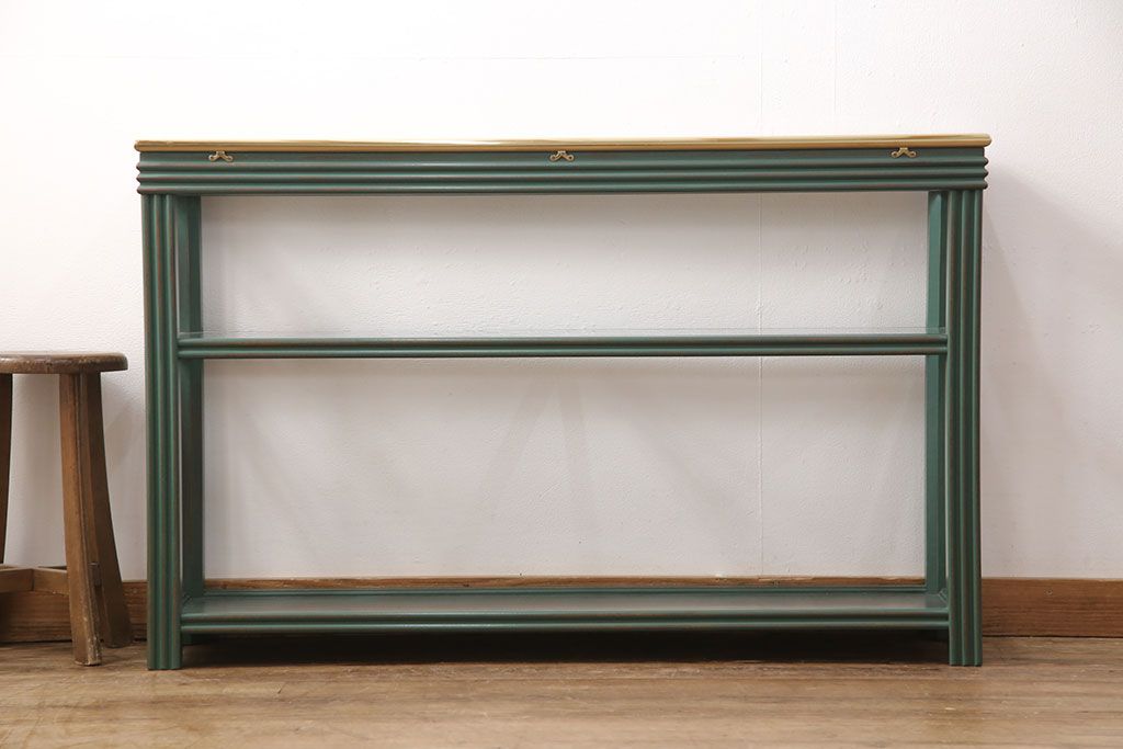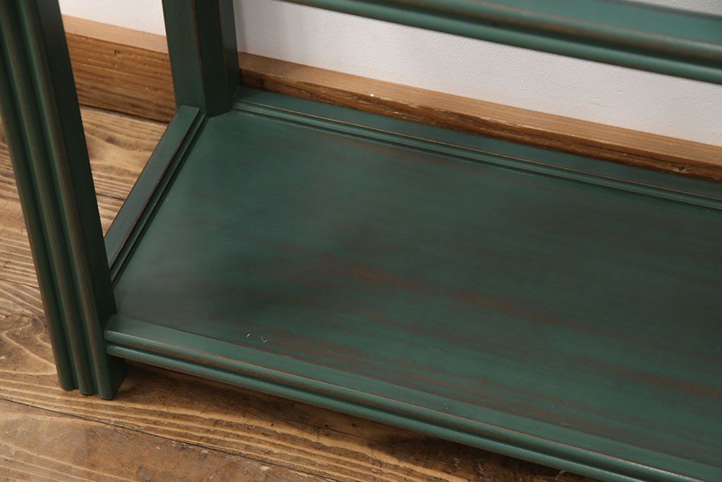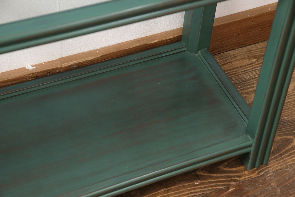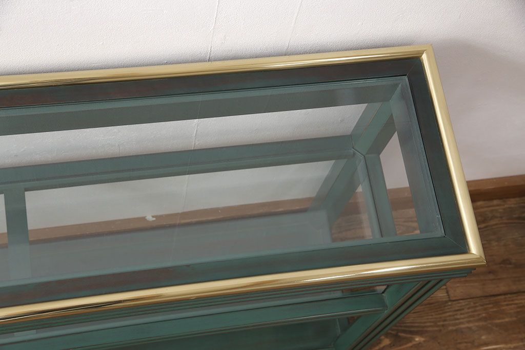オープンラック・シェルフ> ディスプレイラック > 中古 バロッサバレンティ(VARO,S.A. VALENTI) アルタミラ グリーンとゴールドの組み合わせが高級感を醸し出すコンソールテーブル(ガラステーブル、ナイトテーブル、飾り棚、陳列棚、店舗什器)(定価約26万円)(R-051131)