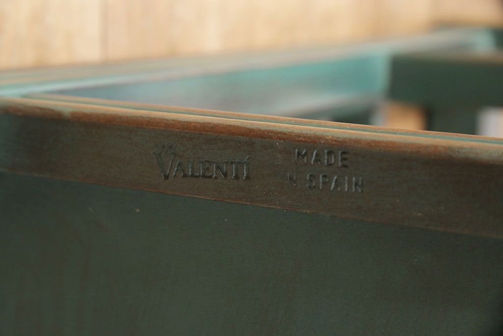 中古 バロッサバレンティ(VARO,S.A. VALENTI) アルタミラ グリーンとゴールドの組み合わせが高級感を醸し出すコンソールテーブル(ガラステーブル、ナイトテーブル、飾り棚、陳列棚、店舗什器)(定価約26万円)(R-051131)です。