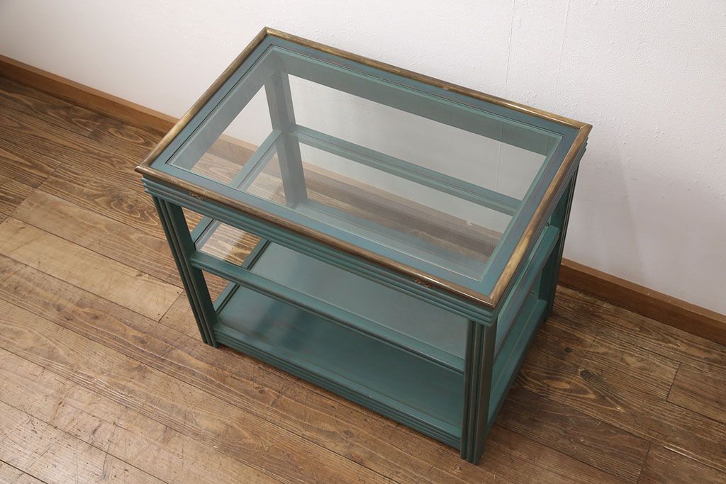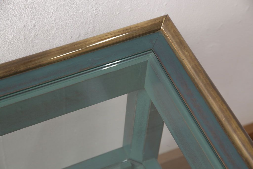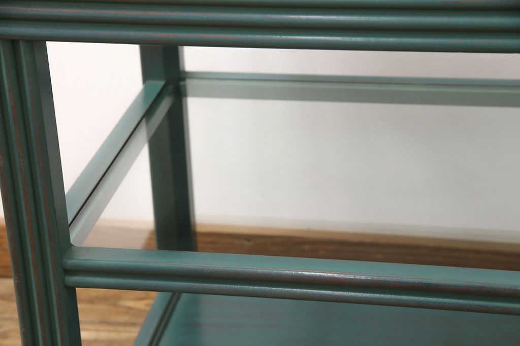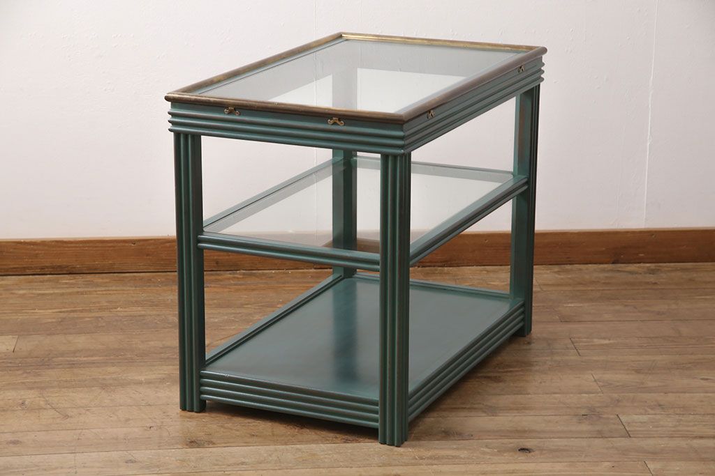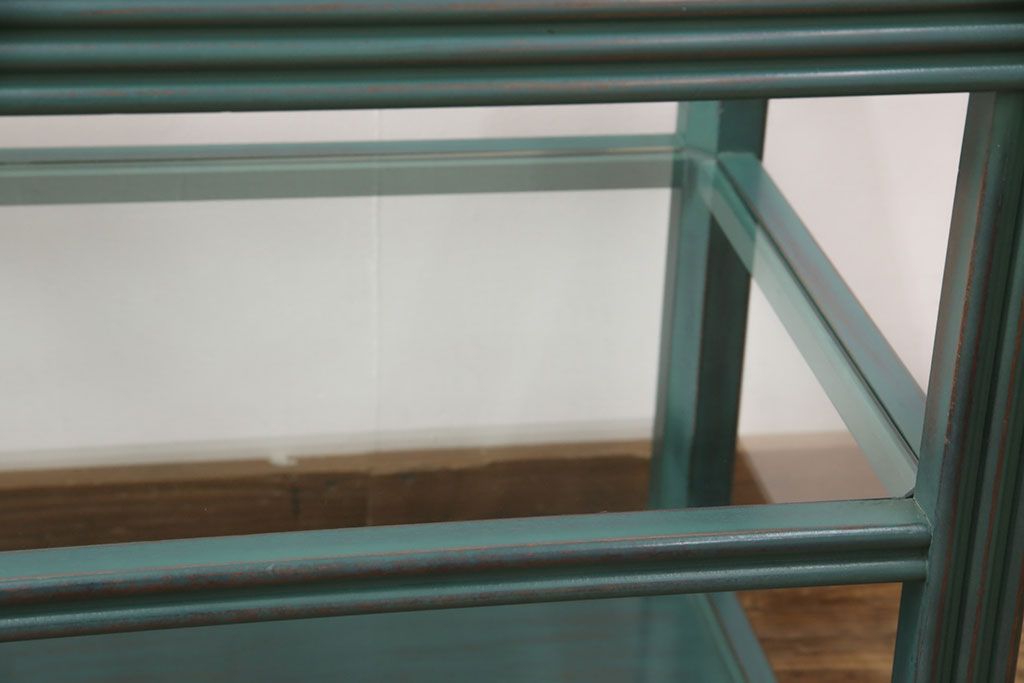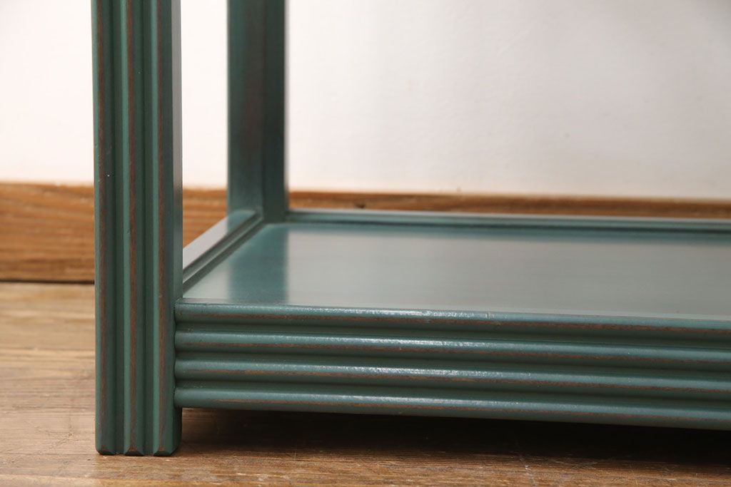テーブル> サイドテーブル > 中古 バロッサバレンティ(VARO,S.A. VALENTI) アルタミラ グリーンカラーがおしゃれなサイドテーブル(ガラステーブル、ナイトテーブル、飾り棚、陳列棚、店舗什器)(定価約22万円)(R-051130)