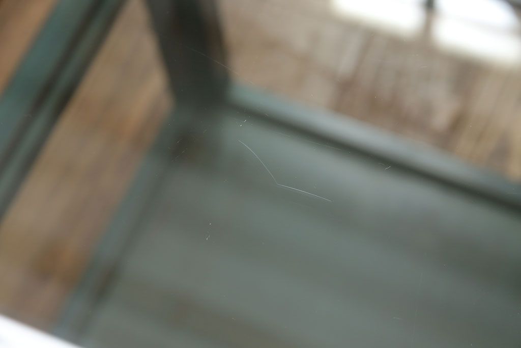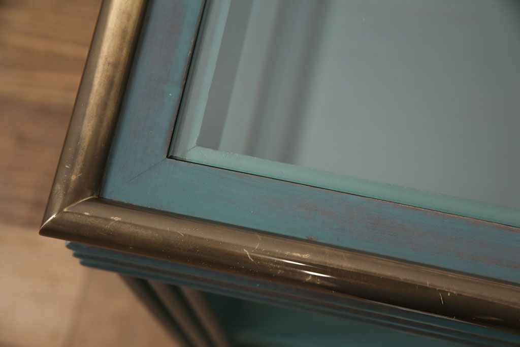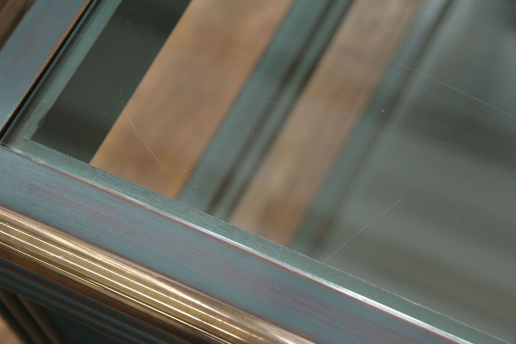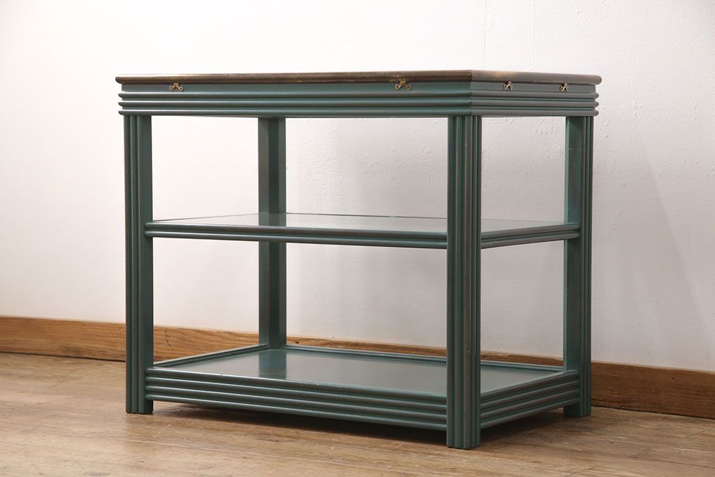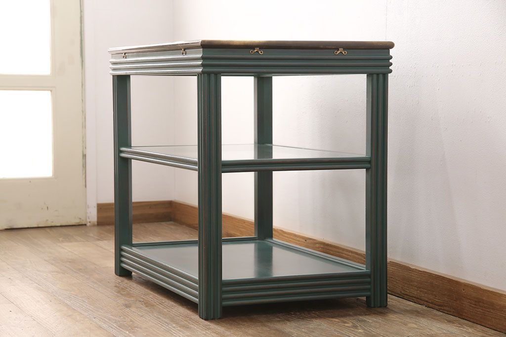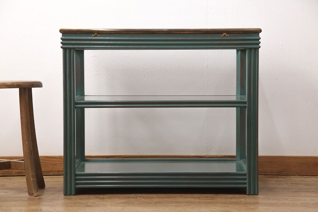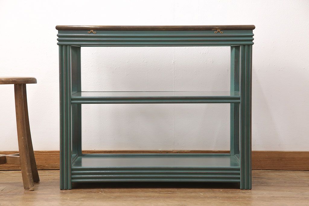 テーブル> サイドテーブル > 中古 バロッサバレンティ(VARO,S.A. VALENTI) アルタミラ グリーンカラーがおしゃれなサイドテーブル(ガラステーブル、ナイトテーブル、飾り棚、陳列棚、店舗什器)(定価約22万円)(R-051130)