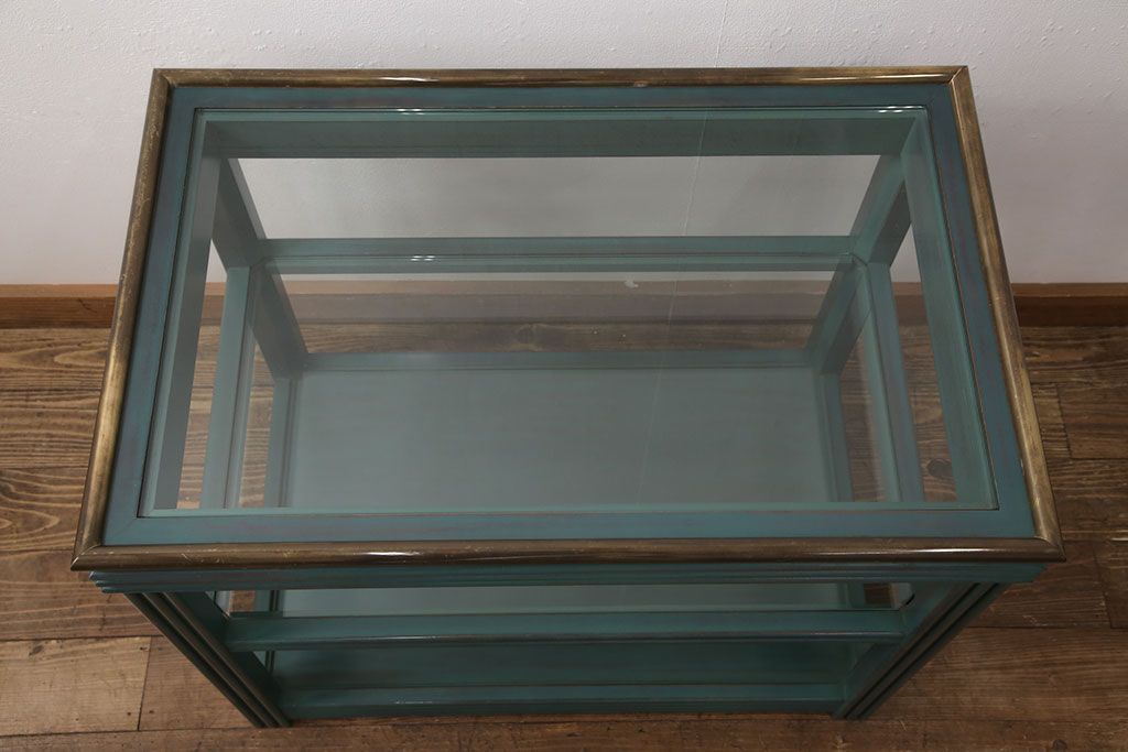 オープンラック・シェルフ> ディスプレイラック > 中古 バロッサバレンティ(VARO,S.A. VALENTI) アルタミラ グリーンカラーがおしゃれなサイドテーブル(ガラステーブル、ナイトテーブル、飾り棚、陳列棚、店舗什器)(定価約22万円)(R-051130)