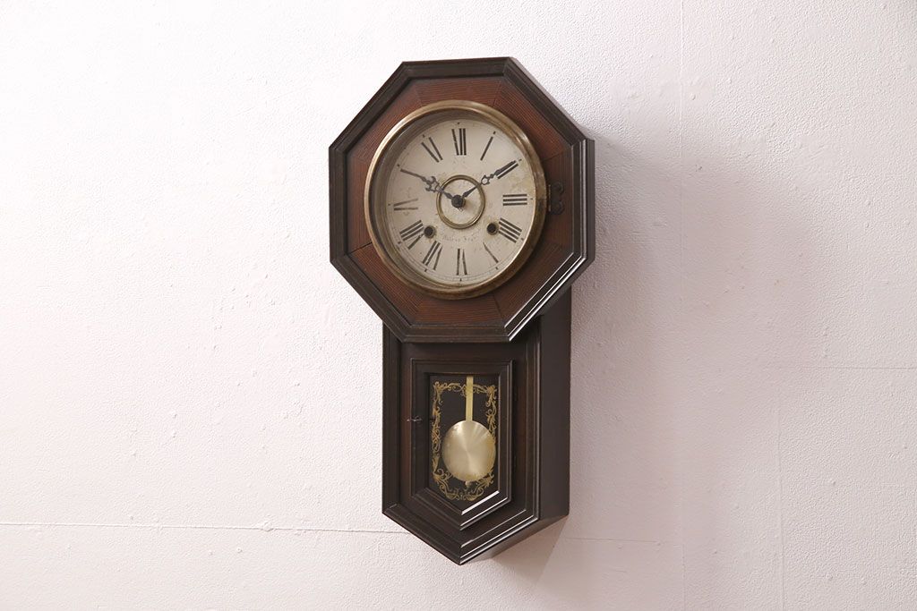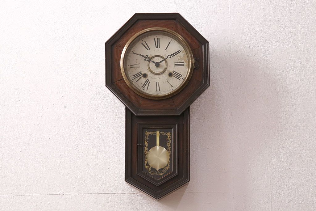 時計> 掛け時計 > 和製アンティーク TAKANO(高野時計)製 電池式 八角合長型のレトロな柱時計(掛け時計、八角時計)(R-051227)