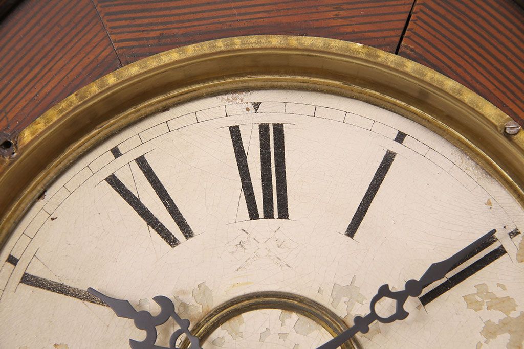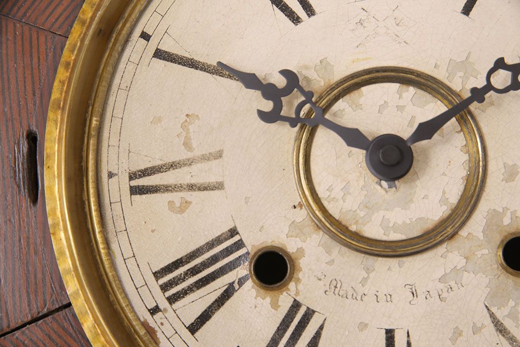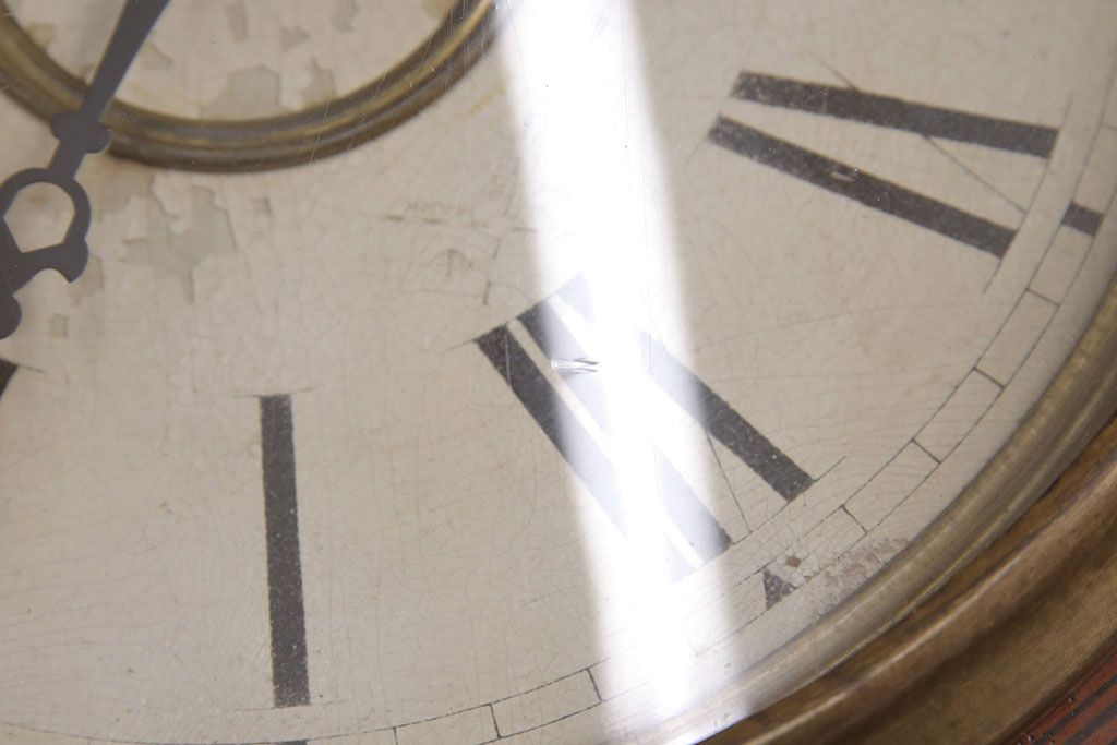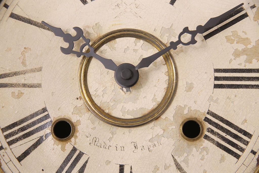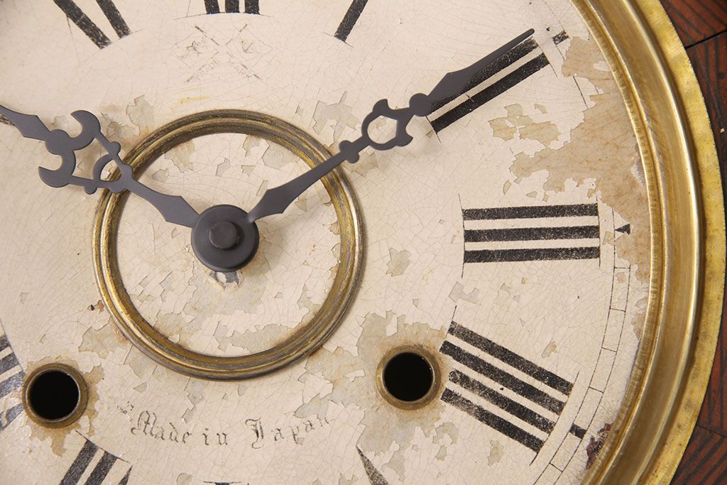 ムーブメントは新品の電池式に交換してあります。乾電池が付属します。振り子は飾りで、動きますが針と連動はしていません。