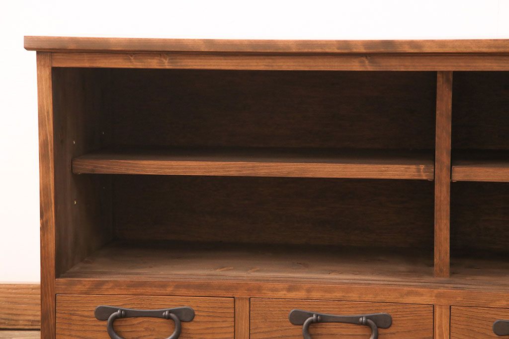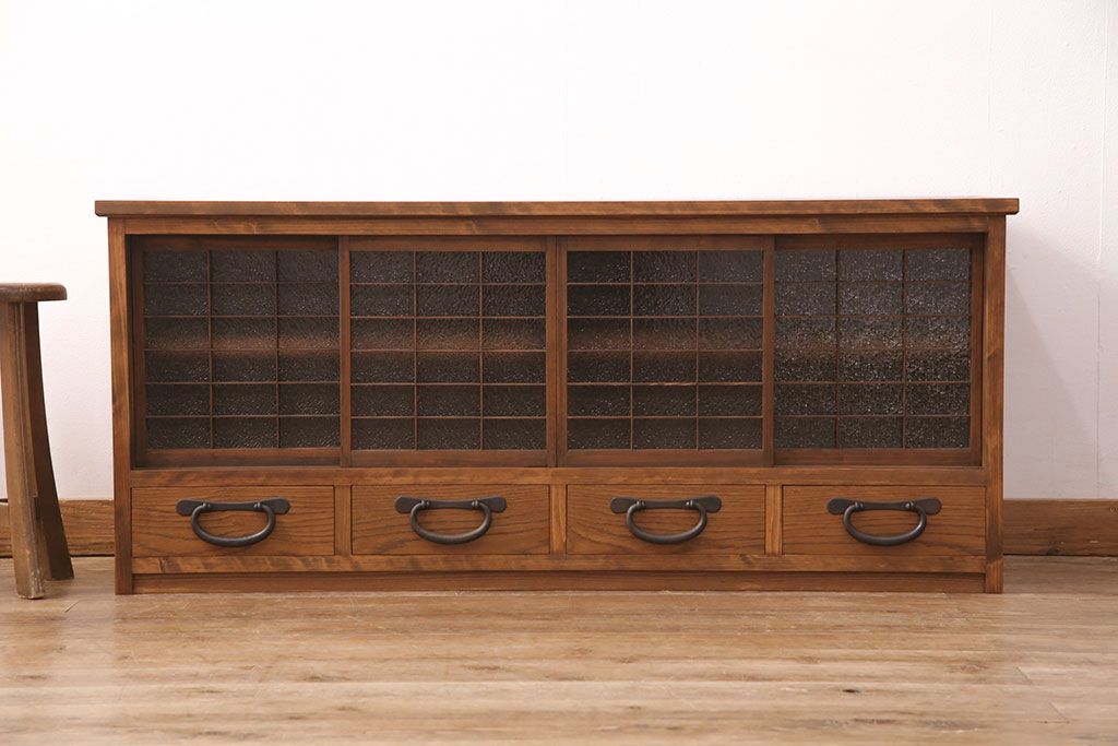 ラフジュ工房> キャビネット・戸棚> テレビ台・ローボード > ラフジュ工房オリジナル 古建具リメイク きらきら輝くダイヤガラスがレトロな雰囲気を醸しだすテレビ台(テレビボード、ローボード、リビングボード、収納棚)(R-051239)