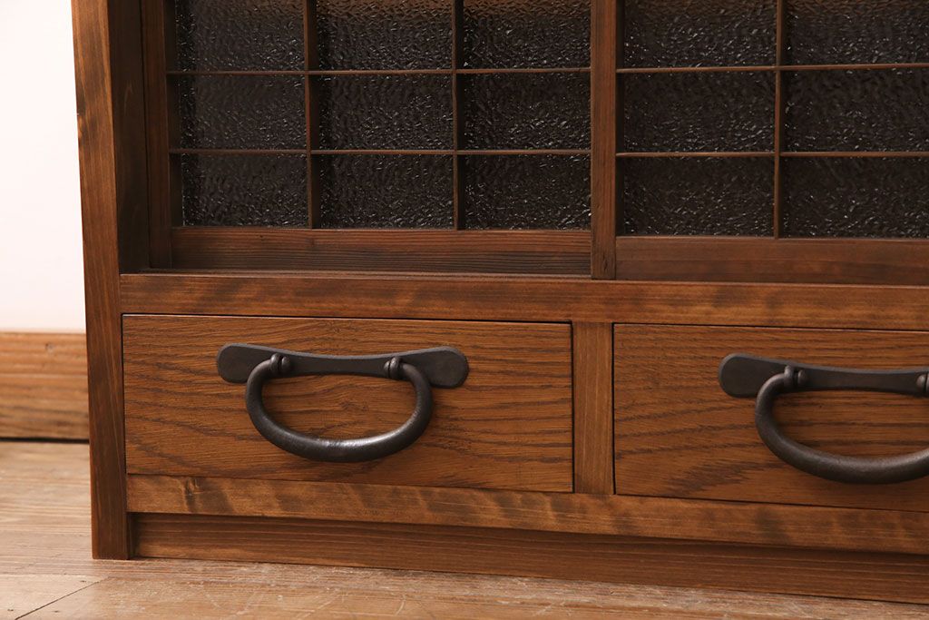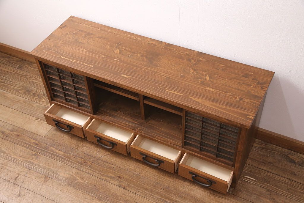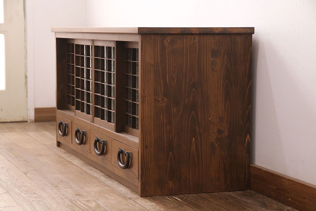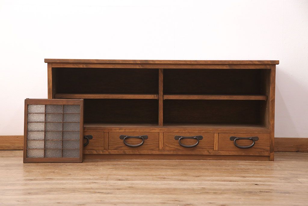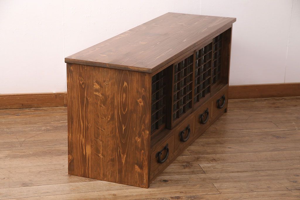 ラフジュ工房オリジナル 古建具リメイク きらきら輝くダイヤガラスがレトロな雰囲気を醸しだすテレビ台(テレビボード、ローボード、リビングボード、収納棚)(R-051239)