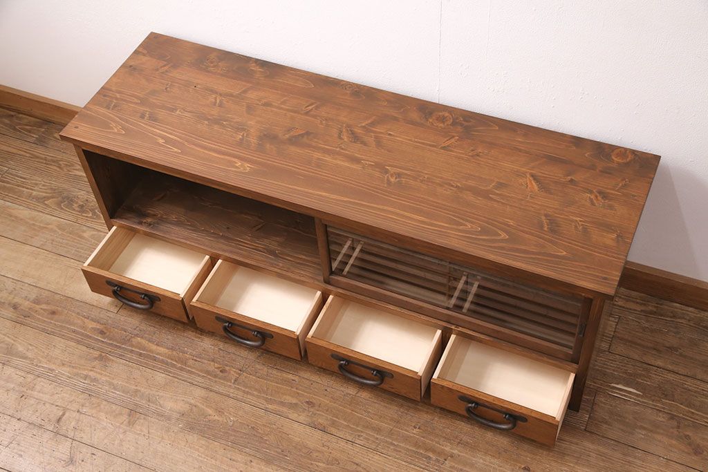 ラフジュ工房オリジナル 古建具リメイク 和モダンの空間づくりにおすすめのテレビ台(テレビボード、ローボード、リビングボード、収納棚)(R-051240)